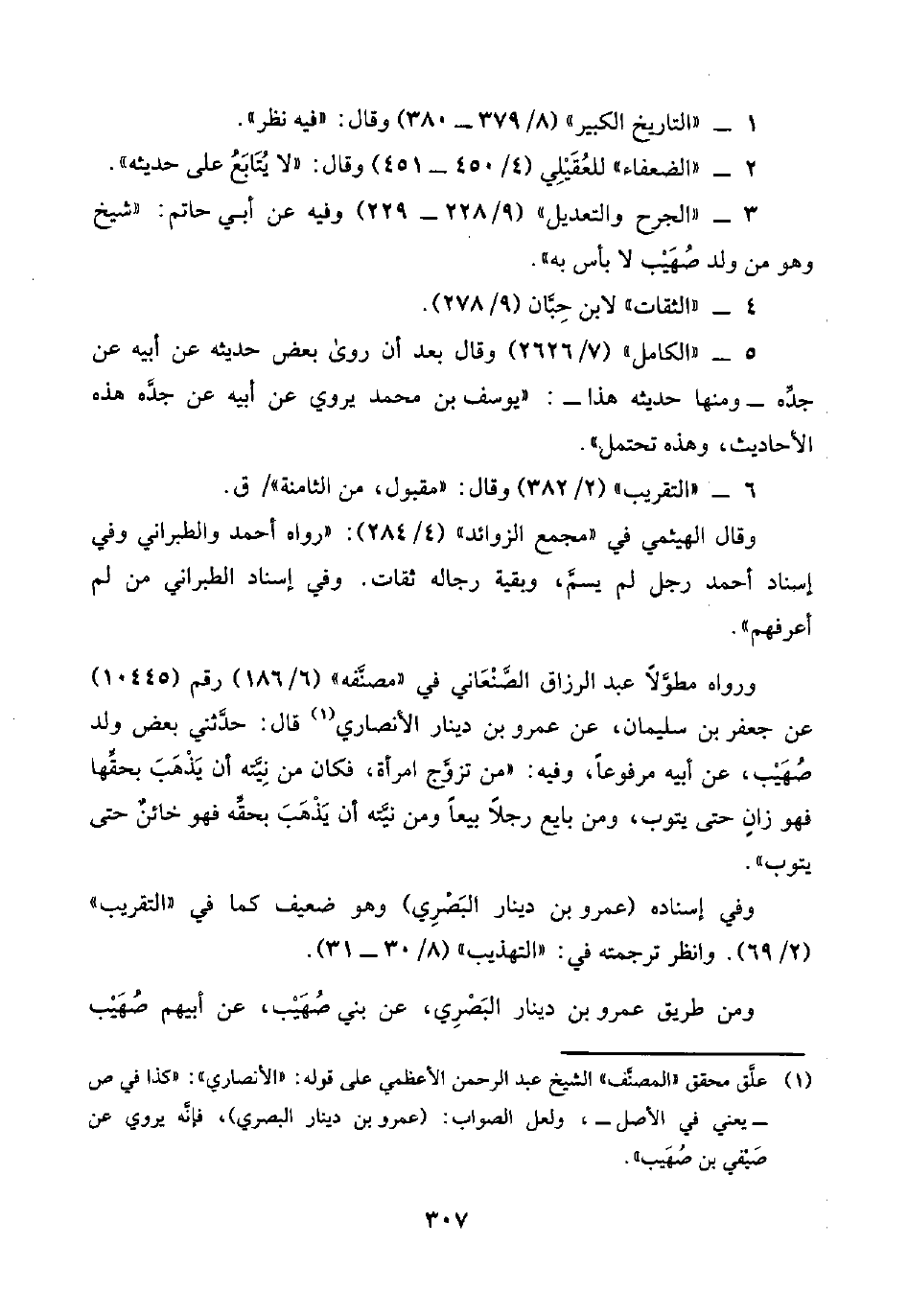 ٣ - "الجرح والتعديل" (٩/ ٢٢٨ - ٢٢٩) وفيه عن أبي حاتم: "شيخ وهو من ولد صُهَيْب لا بأس به".
