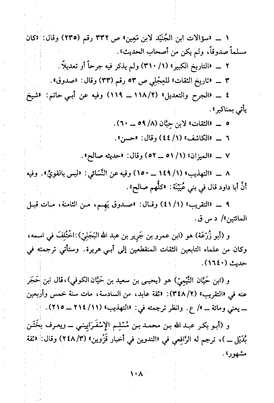 ٨ - "التهذيب" (١/ ١٤٩ - ١٥٠) وفيه عن النَّسَائي: "ليس بالقويِّ". وفيه أنَّ أبا داود قال في بني عُيَيْنَة: "كلُّهم صالح".