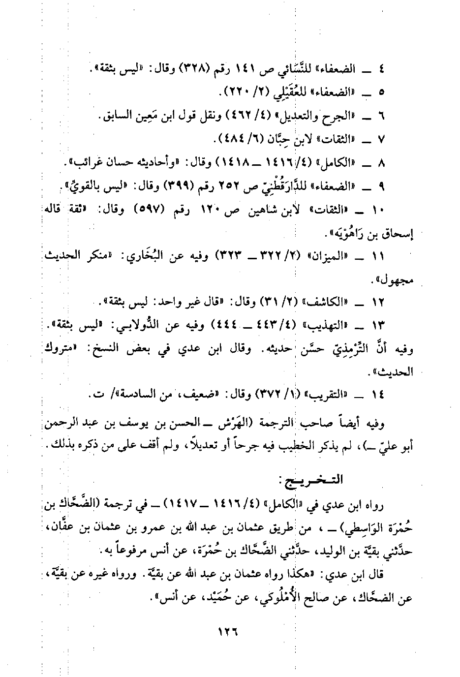 ٩ - "الضعفاء" للدَّارَقُطْنِيّ ص ٢٥٢ رقم (٣٩٩) وقال: "ليس بالقويِّ".