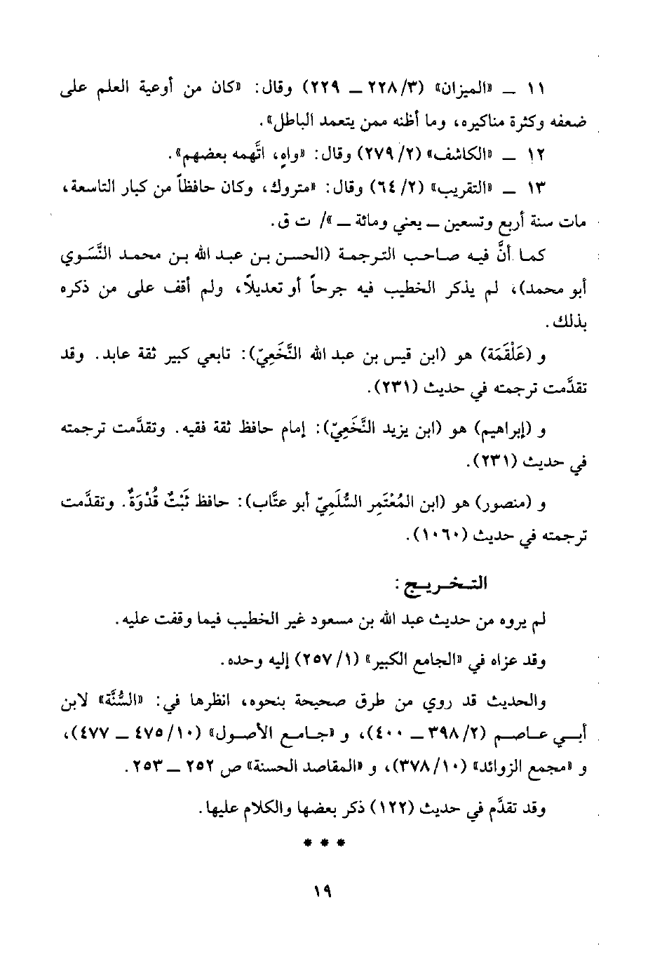 ١١ - "الميزان" (٣/ ٢٢٨ - ٢٢٩) وقال: "كان من أوعية العلم على ضعَّفه وكثرة مناكيره، وما أظنه ممن يتعمد الباطل".