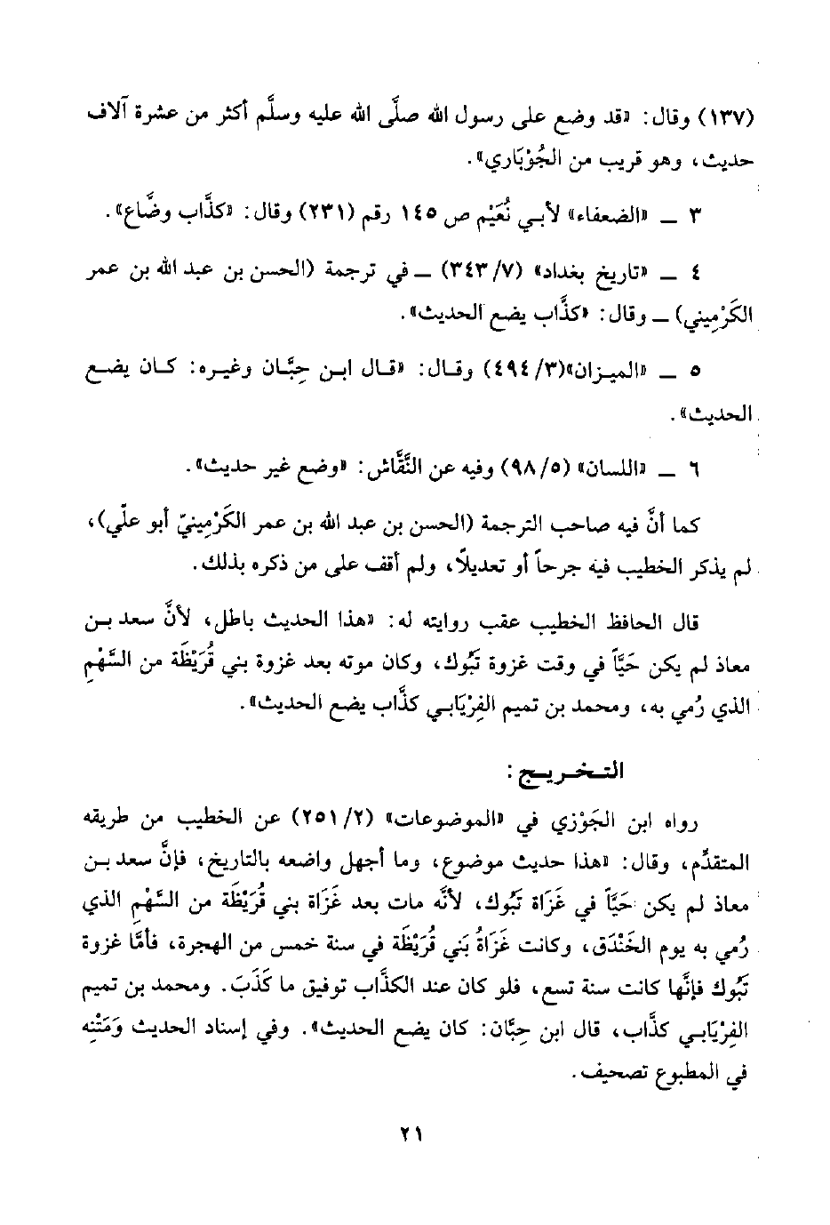 (١٣٧) وقال: "قد وضع على رسول اللَّه صلَّى اللَّه عليه وسلَّم أكثر من عشرة آلاف حديث، وهو قريب من الجُوْبَاري".
