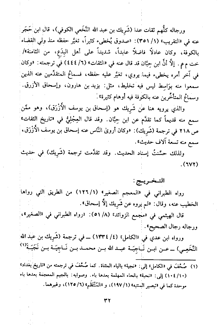 ورواه ابن عدي في "الكامل" (٤/ ١٣٣٤) -في ترجمة (شَرِيك بن عبد اللَّه النَّخَعِيّ) - عن ابن نَاجِيَة عبد اللَّه بن محمد بن نَاجِيَة بن نَجَبَةَ (¬١)