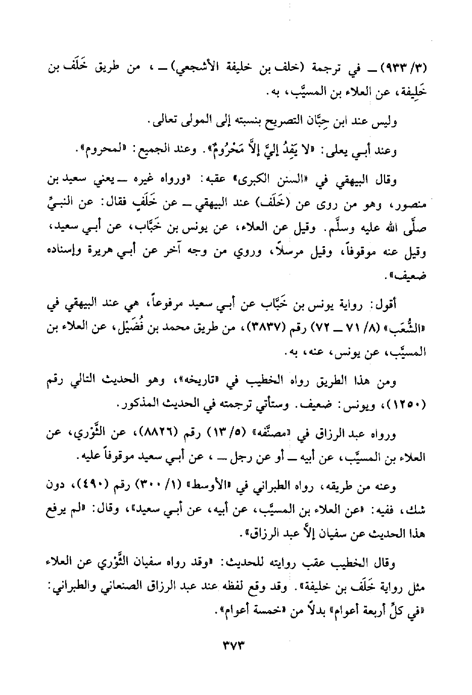 وقال البيهقي في "السنن الكبرى" عقبه: "ورواه غيره -يعني سعيد بن منصور، وهو من روى عن (خَلَف) عند البيهقي- عن خَلَفٍ فقال: عن النبيِّ صلَّى اللَّه عليه وسلَّم. وقيل عن العلاء، عن يونس بن خَبَّاب، عن أبي سعيد، وقيل عنه موقوفًا، وقيل مرسلًا، وروي من وجه آخر عن أبي هريرة وإسناده ضعيف".