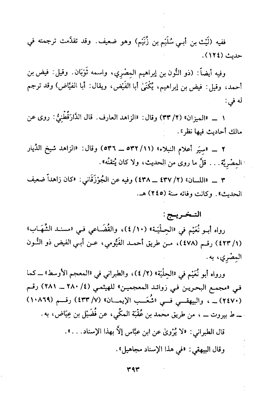 ٣ - "اللسان" (٢/ ٤٣٧ - ٤٣٨) وفيه عن الجُوْزَقَاني: "كان زاهدًا ضعيف الحديث". وكانت وفاته سنة (٢٤٥ هـ).