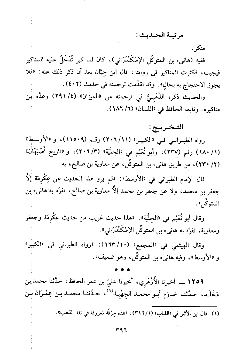 قال الإِمام الطبراني في "الأوسط": "لم يرو هذا الحديث عن عِكْرِمَة إلَّا جعفر بن محمد، ولا عن جعفر بن محمد إلَّا معاوية بن صالح، تفرَّد به هانئ بن المتوكِّل".