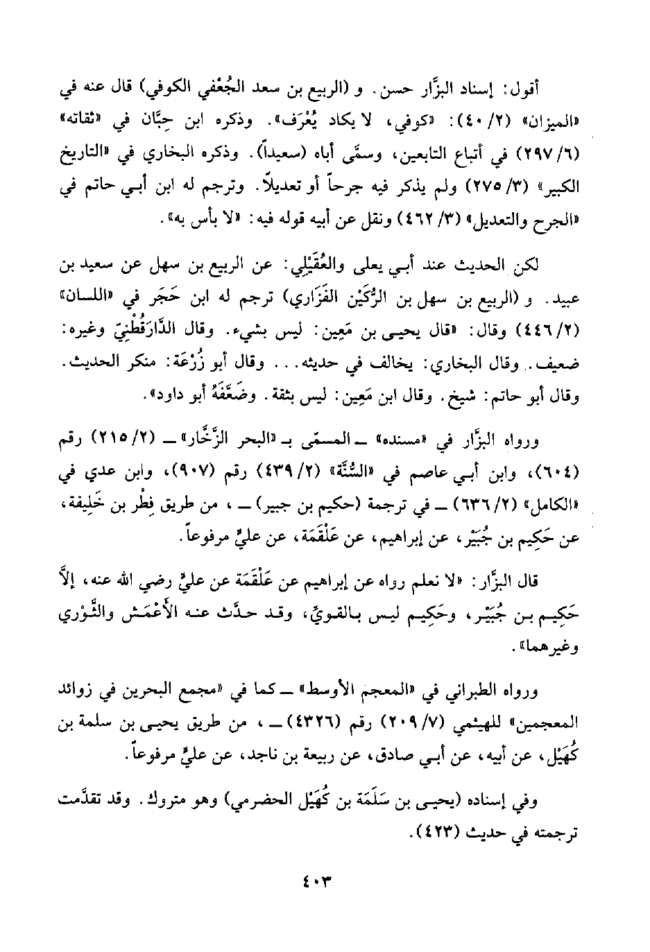 قال البزَّار: "لا نعلم رواه عن إبراهيم عن عَلْقَمَة عن عليٍّ رضي اللَّه عنه، إلَّا حَكِيم بن جُبَيْر، وحَكِيم ليس بالقويِّ، وقد حدَّث عنه الأَعْمَش والثَّوْريِّ وغيرهما".