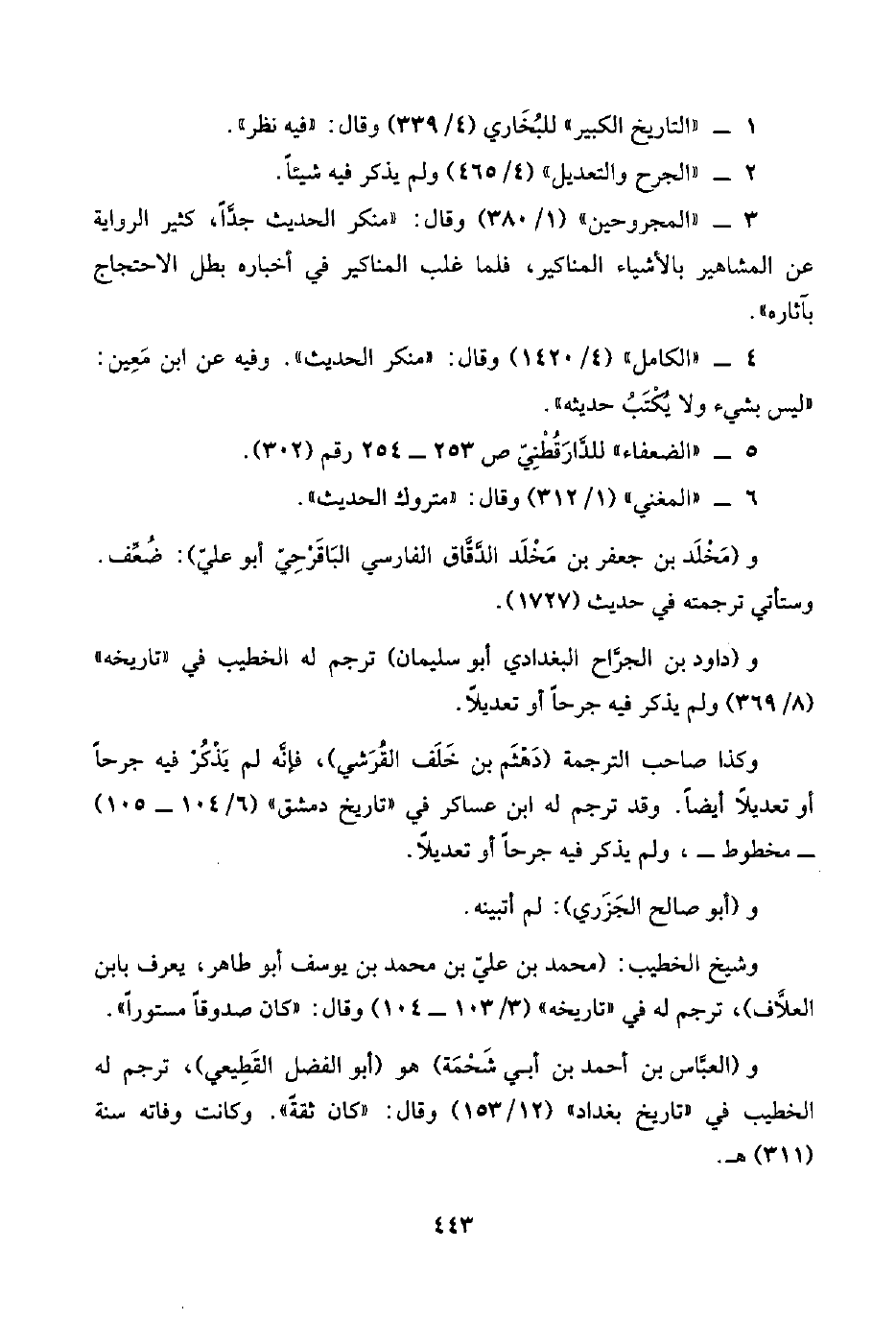 ٥ - "الضعفاء" للدَّارَقُطْنِيّ ص ٢٥٣ - ٢٥٤ رقم (٣٠٢).
