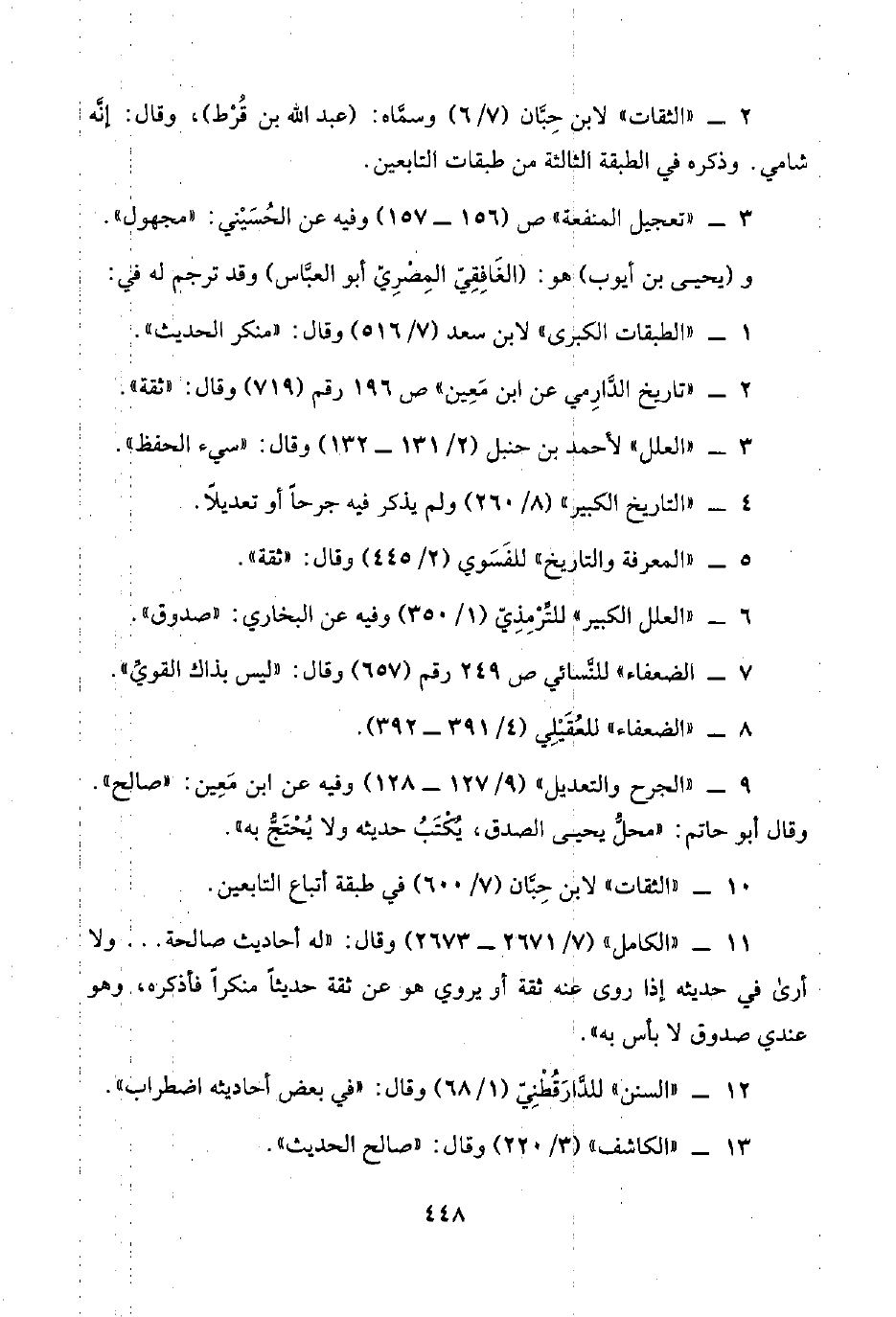 ٩ - "الجرح والتعديل" (٩/ ١٢٧ - ١٢٨) وفيه عن ابن مَعِين: "صالح". وقال أبو حاتم: "محلُّ يحيى الصدق، يُكْتَبُ حديثه ولا يُحْتَجُّ به".