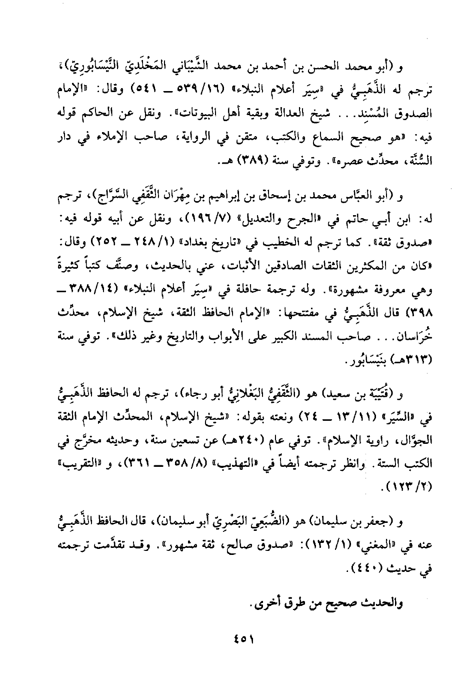 و(أبو العبَّاس محمد بن إسحاق بن إبراهيم بن مِهْرَان الثَّقَفِي السَّرَّاج)، ترجم له: ابن أبي حاتم في "الجرح والتعديل" (٧/ ١٩٦)، ونقل عن أبيه قوله فيه: "صدوق ثقة". كما ترجم له الخطيب في "تاريخ بغداد" (١/ ٢٤٨ - ٢٥٢) وقال: "كان من المكثرين الثقات الصادقين الأثبات، عني بالحديث، وصنَّف كتبًا كثيرةً وهي معروفة مشهورة". وله ترجمة حافلة في "سِيَر أعلام النبلاء" (١٤/ ٣٨٨ - ٣٩٨) قال الذَّهَبِيُّ في مفتتحها: "الإمام الحافظ الثقة، شيخ الإسلام، محدِّث خُرَاسان. . . صاحب المسند الكبير على الأبواب والتاريخ وغير ذلك". توفي سنة (٣١٣ هـ) بنَيْسَابُور.