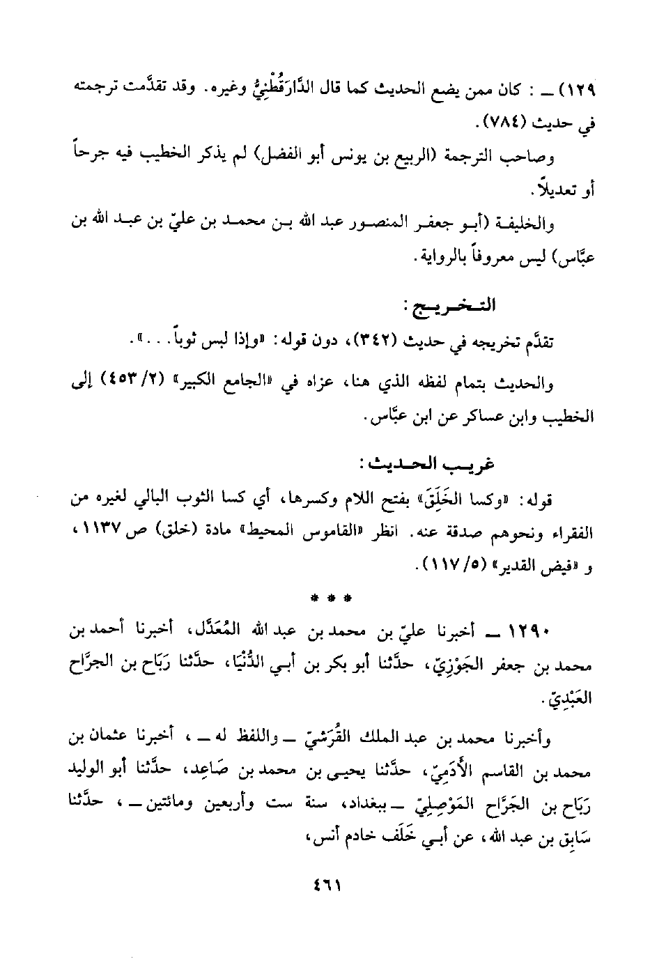 ١٢٩٠ - أخبرنا عليّ بن محمد بن عبد اللَّه المُعَدَّل، أخبرنا أحمد بن محمد بن جعفر الجَوْزِيّ، حدَّثنا أبو بكر بن أبي الدُّنْيَا، حدَّثنا رَبَاح بن الجرَّاح العَبْدِيّ.