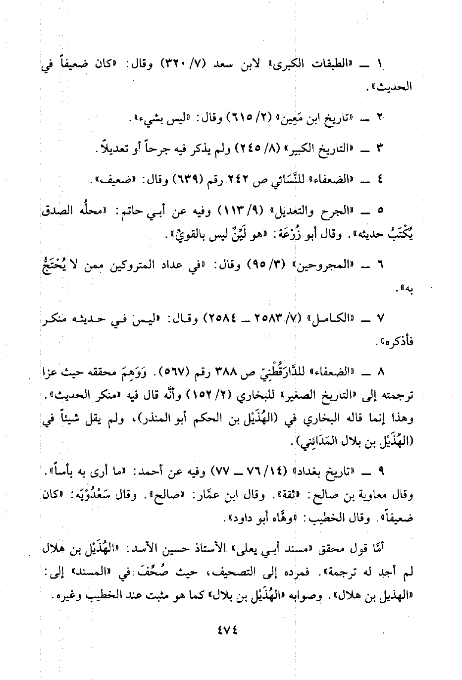 ٨ - "الضعفاء" للدَّارَقُطْنِيّ ص ٣٨٨ رقم (٥٦٧). وَوَهِمَ محققه حيث عزا ترجمته إلى "التاريخ الصغير" للبخاري (٢/ ١٥٢) وأنَّه قال فيه "منكر الحديث". وهذا إنما قاله البُخَاري في (الهُذَيْل بن الحكم أبو المنذر)، ولم يقل شيئًا في (الهُذَيْل بن بلال المَدَائِنِي).