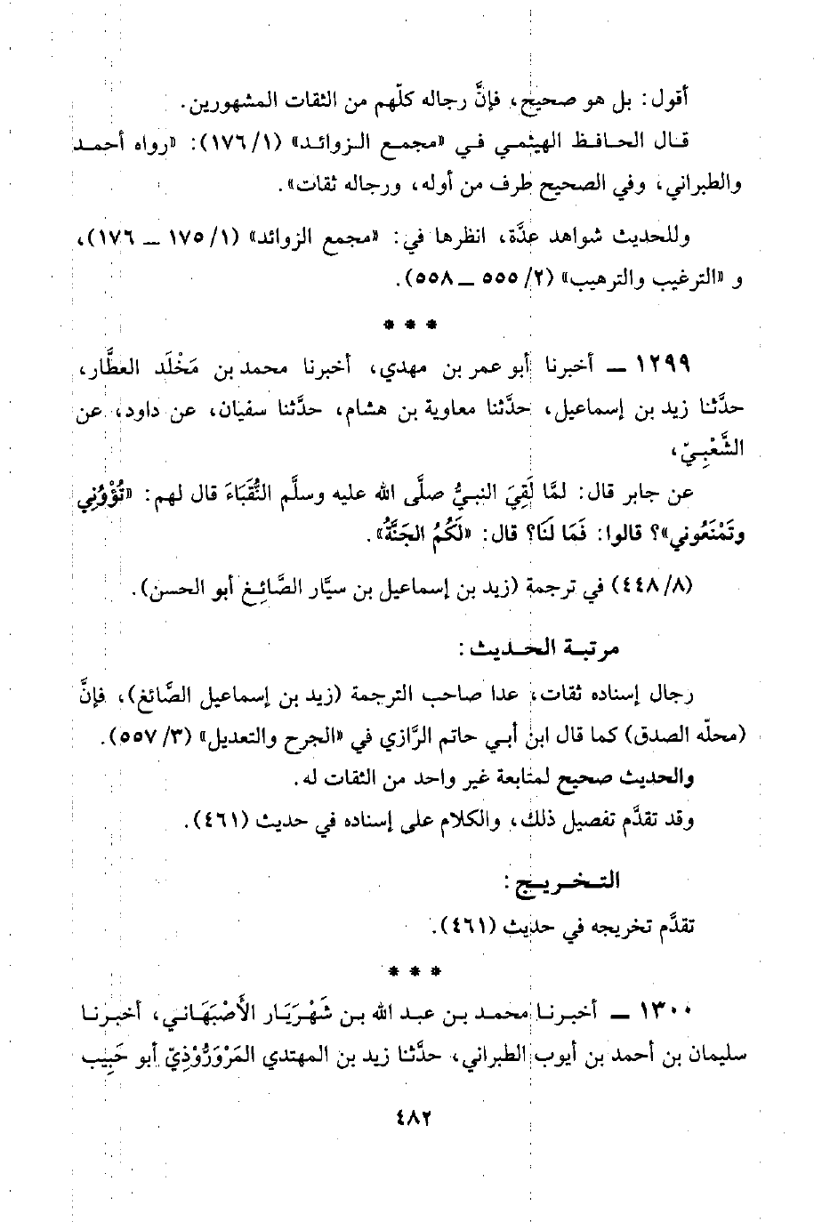١٢٩٩ - أخبرنا أبو عمر بن مهدي، أخبرنا محمد بن مَخْلَد العَطَّار، حدَّثنا زيد بن إسماعيل، حدَّثنا معاوية بن هشام، حدَّثنا سفيان، عن داود عن الشَّعْبِيّ،