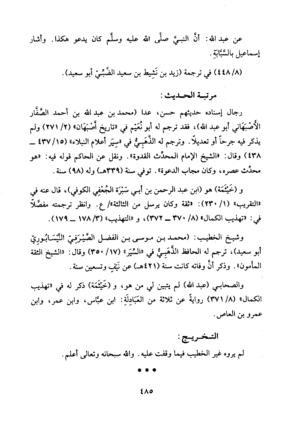 (٨/ ٤٤٨) في ترجمة (زيد بن نَشِيط بن سعيد الضَّبِّيّ أبو سعيد).