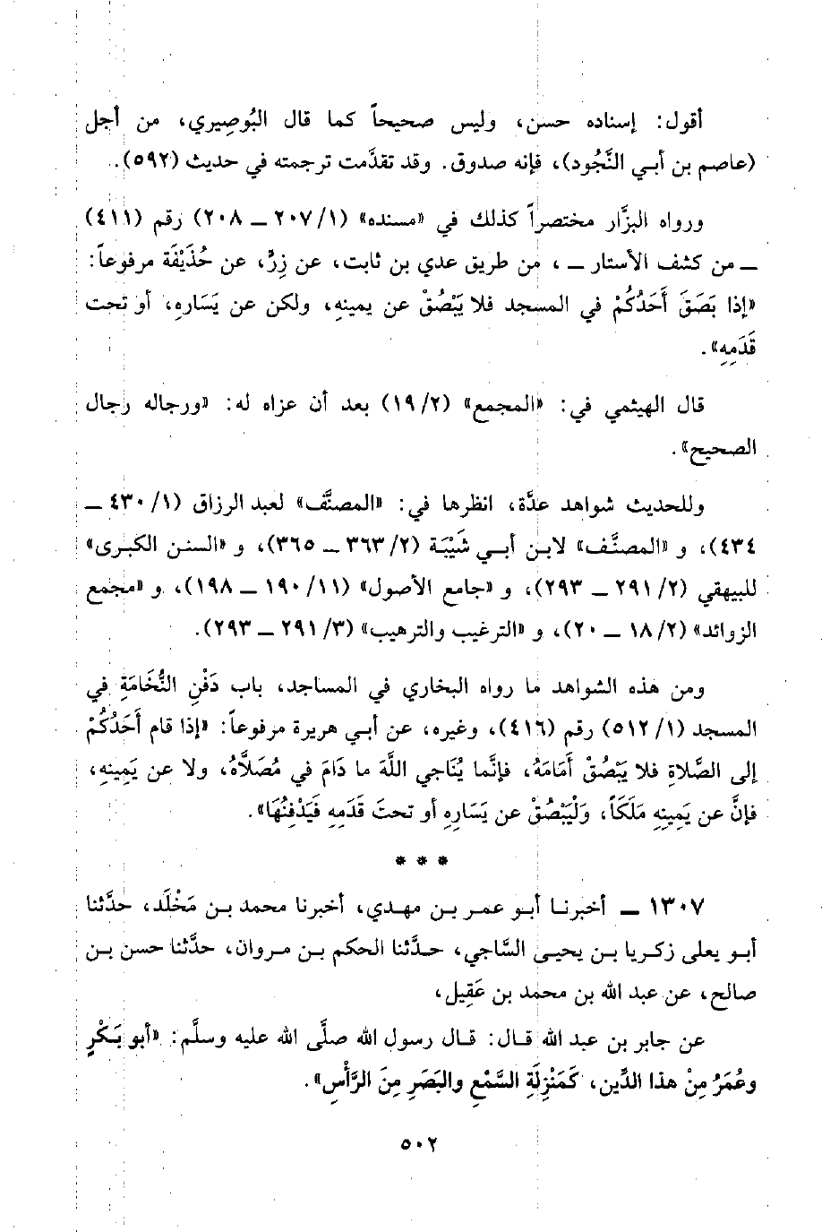 ١٣٠٧ - أخبرنا أبو عمر بن مهدي، أخبرنا محمد بن مَخْلَد، حدَّثنا أبو يعلى زكريا بن يحيى السَّاجي، حدَّثنا الحكم بن مروان، حدَّثنا حسن بن صالح، عن عبد اللَّه بن محمد بن عَقِيل،