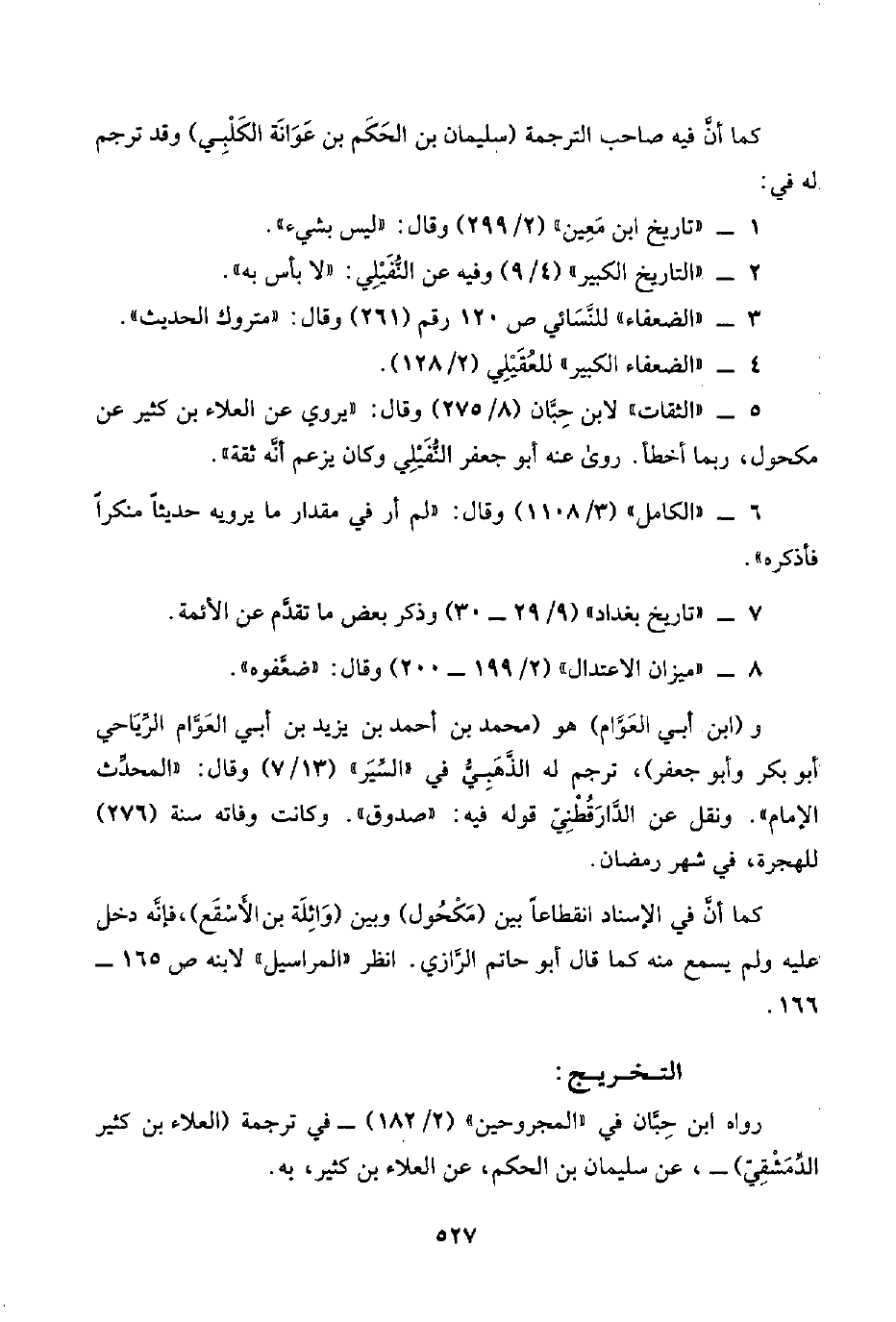 ٥ - "الثقات" لابن حِبَّان (٨/ ٢٧٥) وقال: "يروي عن العلاء بن كثير عن مكحول، ربما أخطأ. روى عنه أبو جعفر النُّفَيْلِي وكان يزعم أنَّه ثقة".