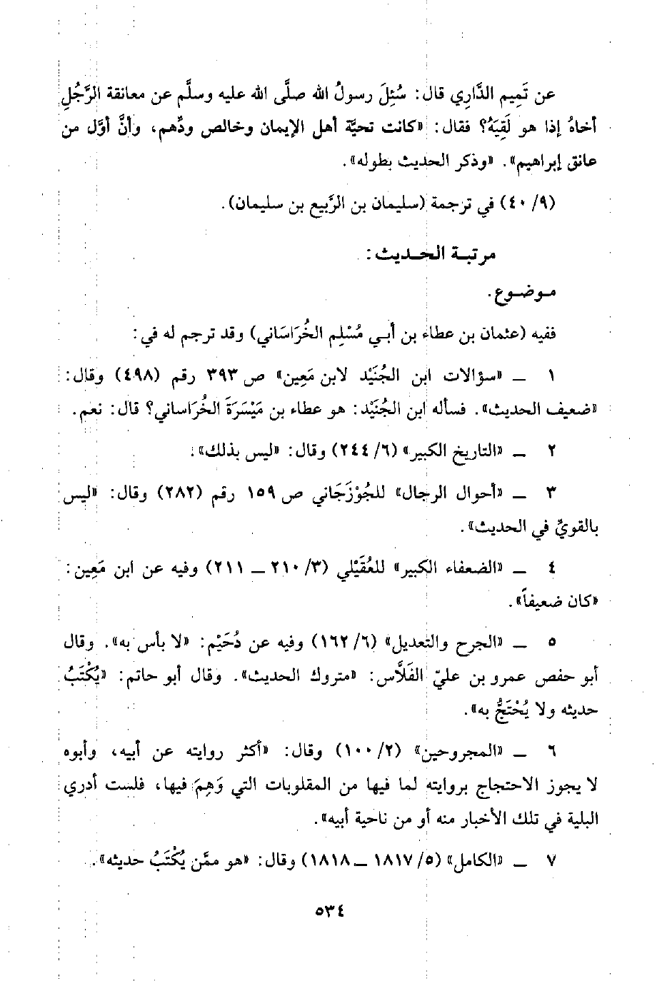 ٣ - "أحوال الرجال" للجُوْزَجَاني ص ١٥٩ رقم (٢٨٢) وقال: "ليس بالقويِّ في الحديث".