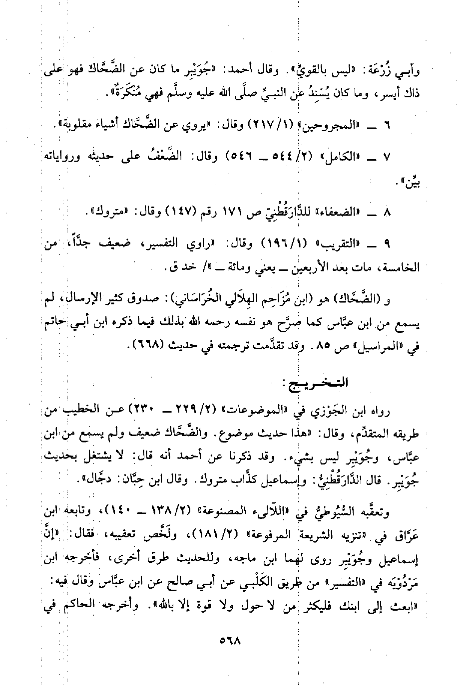 ٦ - "المجروحين" (١/ ٢١٧) وقال: "يروي عن الضَّحَّاك أشياء مقلوبة".