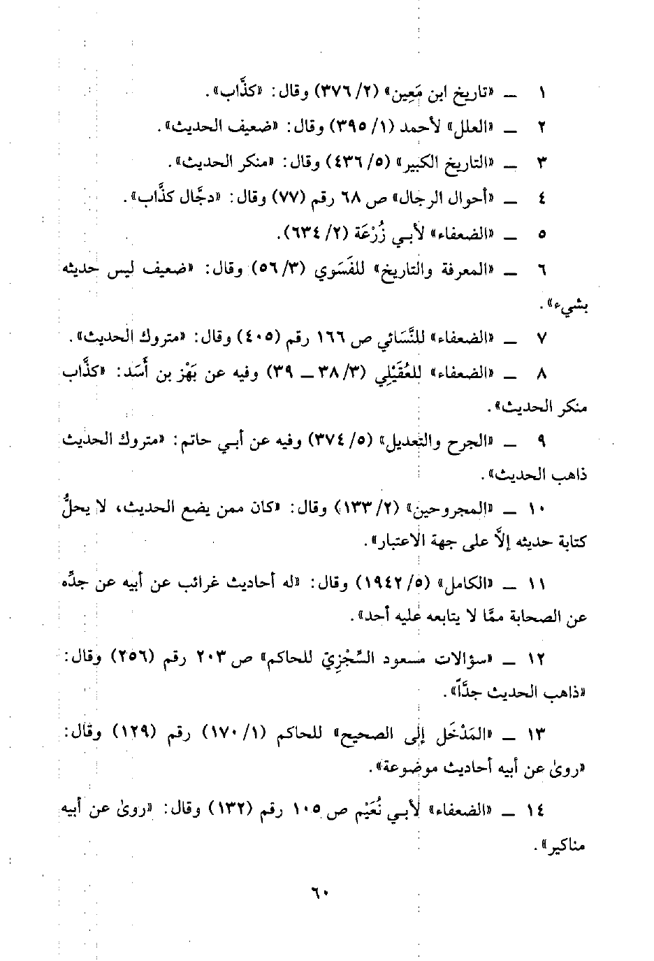 ٨ - "الضعفاء" للعُقَيْلِي (٣/ ٣٨ - ٣٩) وفيه عن بَهْز بن أَسَد: "كذَّاب منكر الحديث".