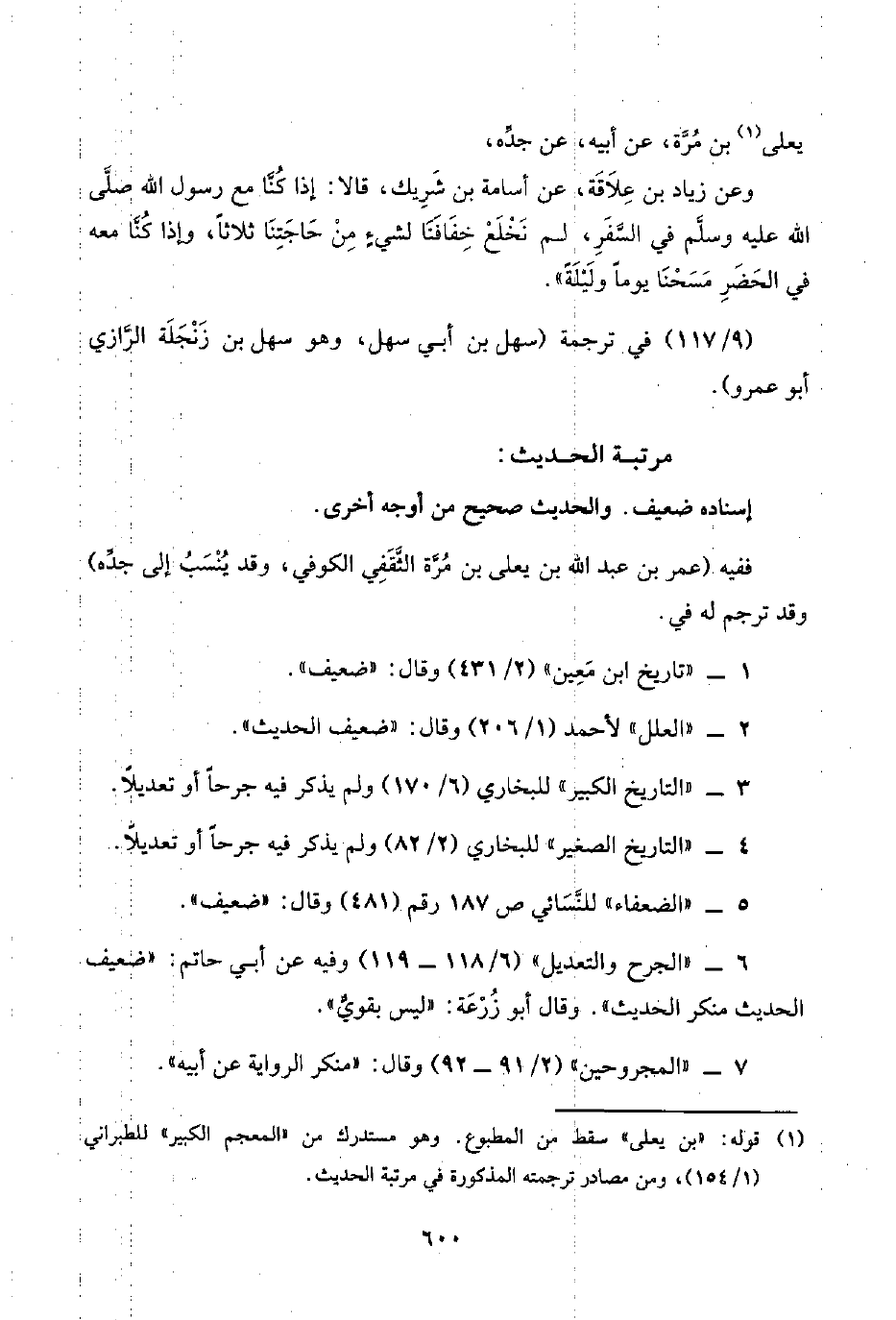 ٥ - "الضعفاء" للنَّسَائي ص ١٨٧ رقم (٤٨١) وقال: "ضعيف".