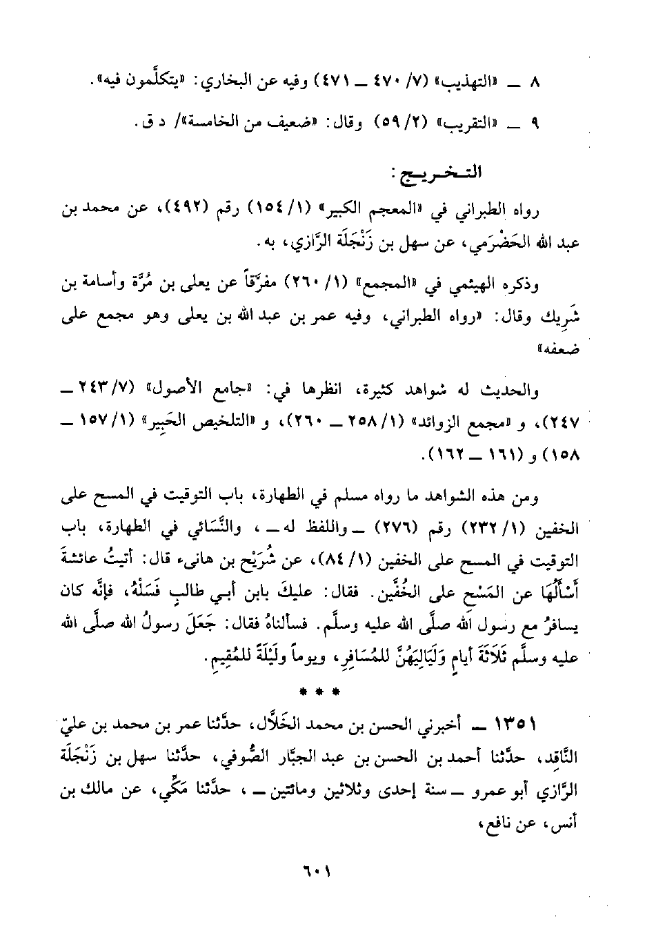 ١٣٥١ - أخبرني الحسن بن محمد الخَلَّال، حدَّثنا عمر بن محمد بن عليّ النَّاقِد، حدَّثنا أحمد بن الحسن بن عبد الجبَّار الصُّوفي، حدَّثنا سهل بن زَنْجَلَة الرَّازي أبو عمرو -سنة إحدى وثلاثين ومائتين-، حدَّثنا مَكِّي، عن مالك بن أنس، عن نافع،