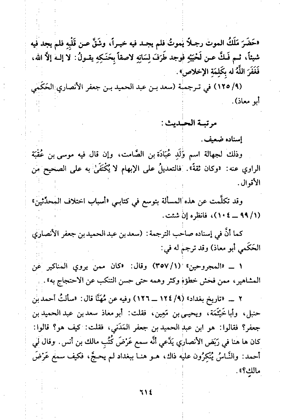 (٩/ ١٢٥) في ترجمة (سعد بن عبد الحميد بن جعفر الأنصاري الحَكَمي أبو معاذ).