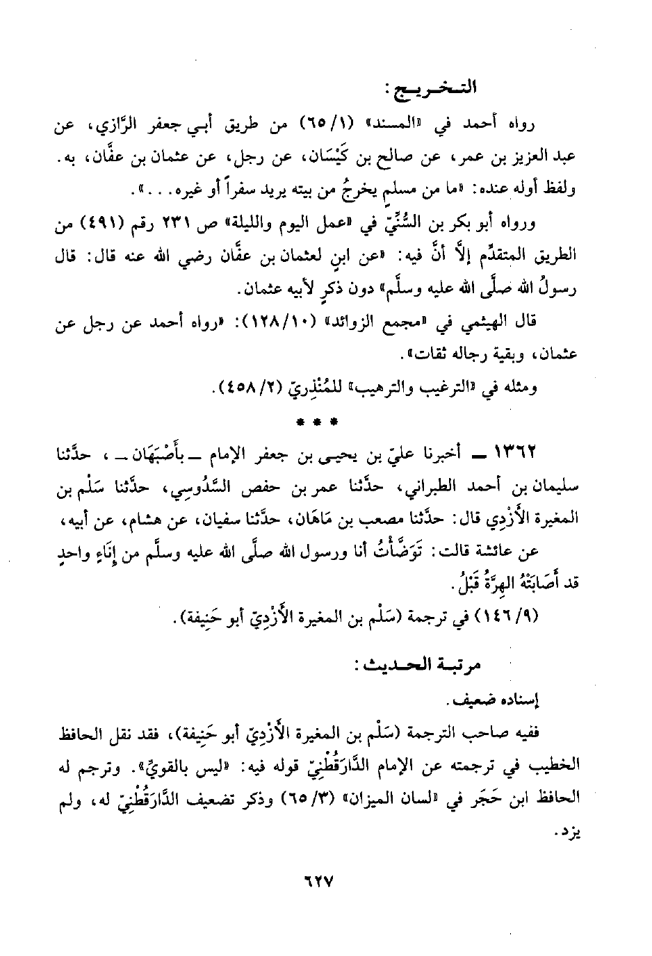 ١٣٦٢ - أخبرنا عليّ بن يحيى بن جعفر الإمام -بأَصْبَهَان-، حدَّثنا سليمان بن أحمد الطبراني، حدَّثنا عمر بن حفص السَّدُوسِي، حدَّثنا سَلْم بن المغيرة الأَزْدِي قال: حدَّثنا مصعب بن مَاهَان، حدَّثنا سفيان، عن هشام، عن أبيه،