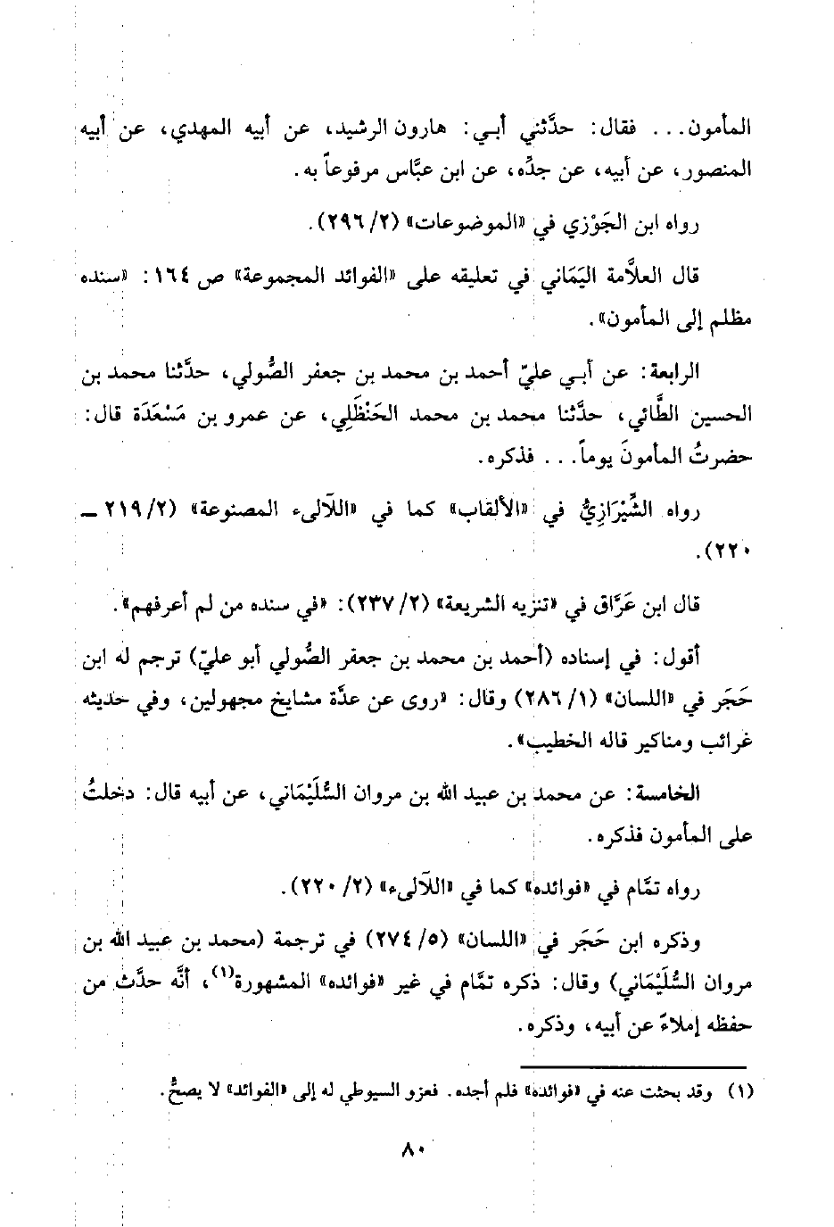 قال العلَّامة اليَمَاني في تعليقه على "الفوائد المجموعة" ص ١٦٤: "سنده مظلم إلى المأمون".