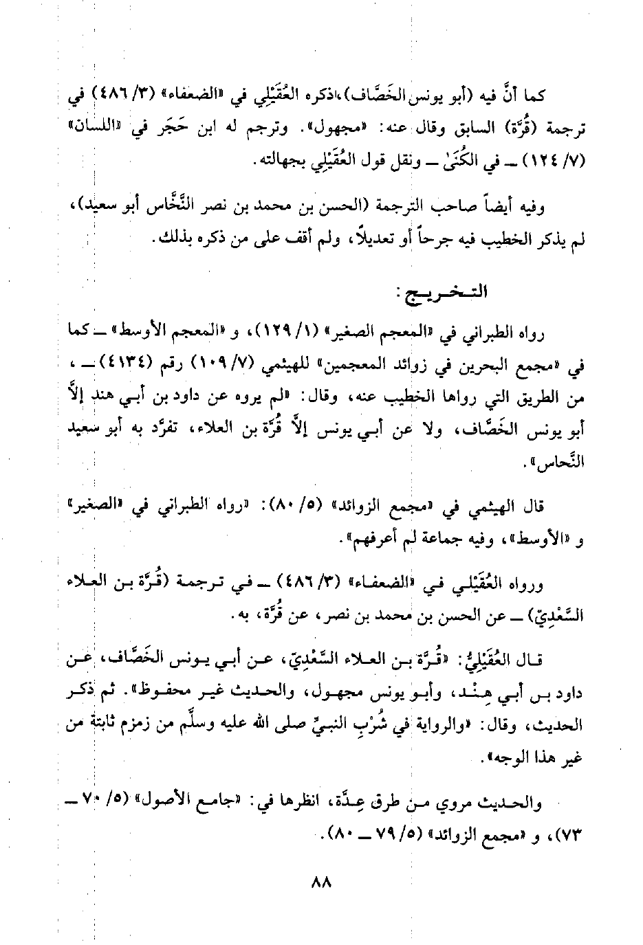 كما أنَّ فيه (أبو يونس الخَصَّاف)، ذكره العُقَيْلِي في "الضعفاء" (٣/ ٤٨٦) في ترجمة (قُرَّة) السابق وقال: عنه: "مجهول". وترجم له ابن حَجَر في "اللسان" (٧/ ١٢٤) -في الكُنَى- ونقل قول العُقَيْلِي بجهالته.