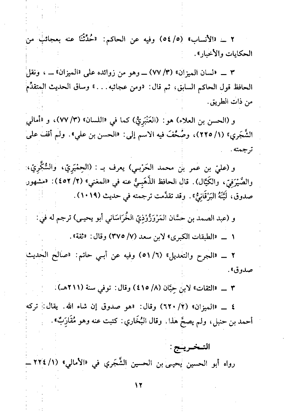 ٢ - "الأنساب" (٥/ ٥٤) وفيه عن الحاكم: "حُدِّثْنَا عنه بعجائب من الحكايات والأخبار".