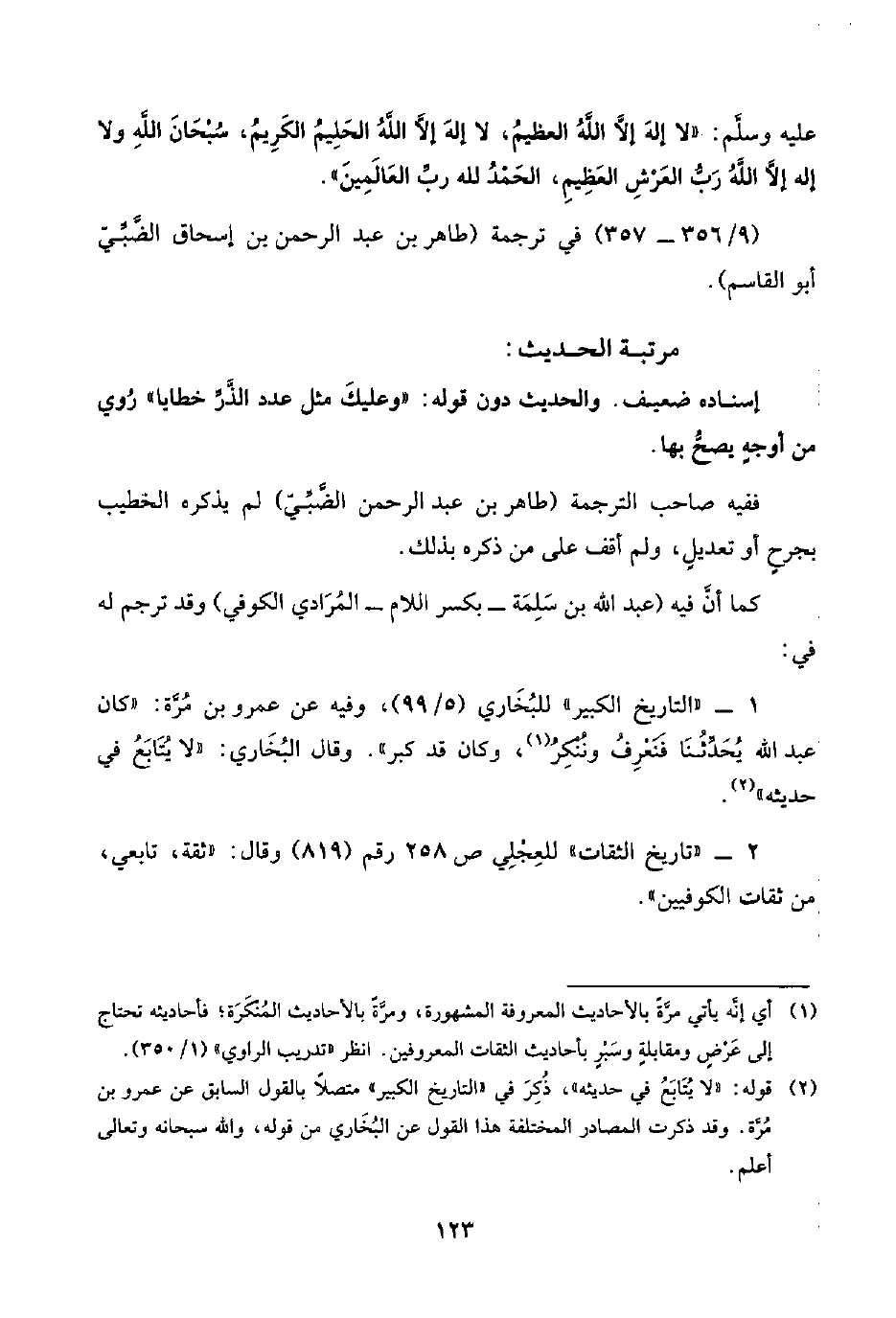 (¬٢) قوله: "لا يُتَابَعُ في حديثه"، ذُكِرَ في "التاريخ الكبير" متصلًا بالقول السابق عن عمرو بن مُرَّة. وقد ذكرت المصادر المختلفة هذا القول عن البُخَاري من قوله، واللَّه سبحانه وتعالى أعلم.
