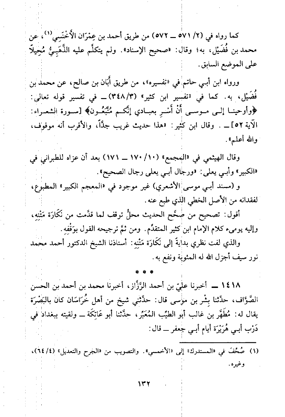 كما رواه في (٢/ ٥٧١ - ٥٧٢) من طريق أحمد بن عِمْران الأَخْنَسِيّ (¬١)، عن محمد بن فُضَيْل، به؛ وقال: "صحيح الإسناد"، ولم يتكلَّم عليه الذَّهَبِيُّ مُحِيلًا على الموضع السابق.