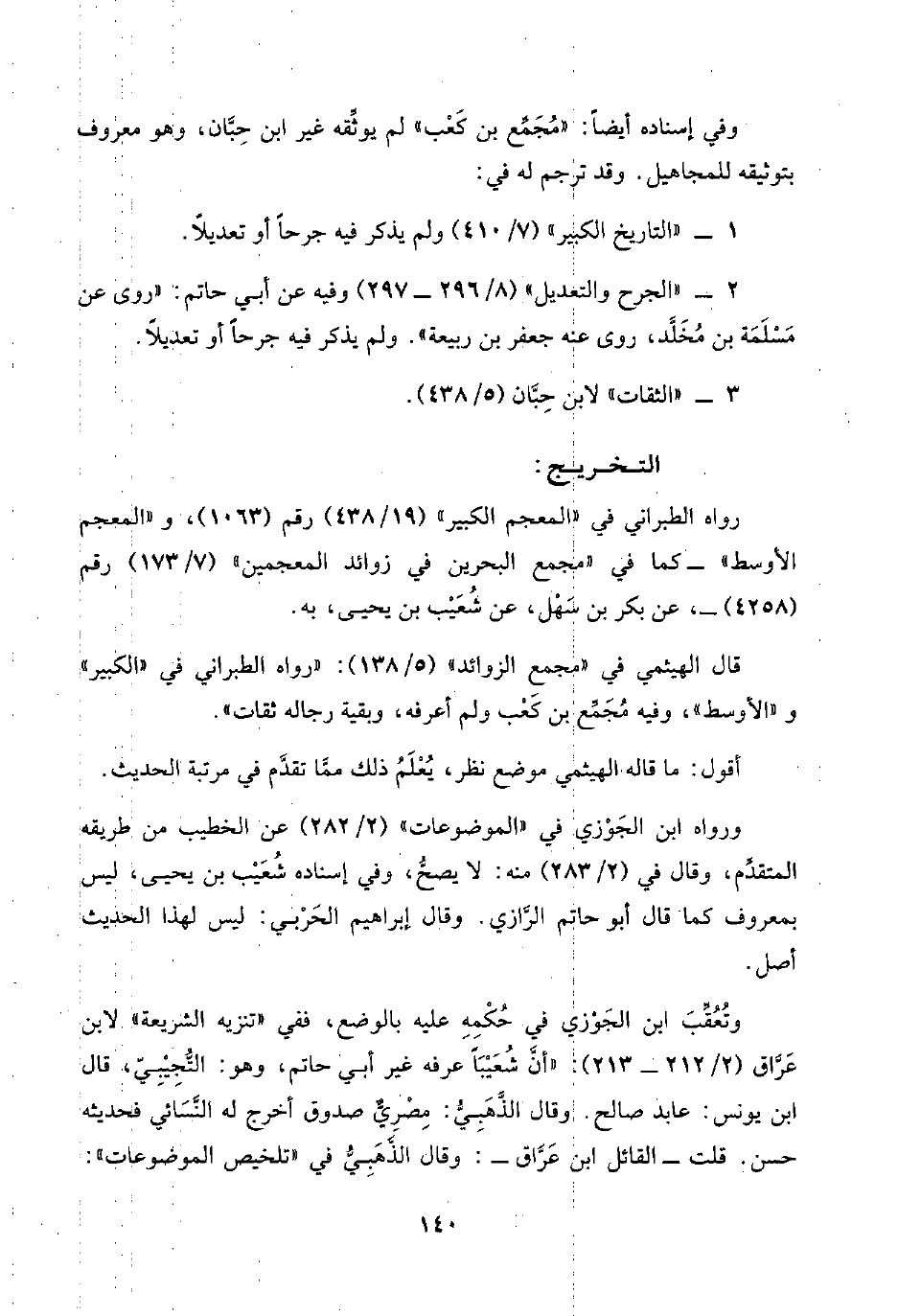 وتُعُقِّبَ ابن الجَوْزي في حُكْمِهِ عليه بالوضع، ففي "تنزيه الشريعة" لابن عَرَّاق (٢/ ٢١٢ - ٢١٣) "أنَّ شُعَيْبًا عرفه غير أبي حاتم، وهو: التُّجِيْبِيّ، قال ابن يونس: عابد صالح. وقال الذَّهَبِيُّ: مِصْرِيٌّ صدوق أخرج له النَّسَائي فحديثه حسن. قلت -القائل ابن عَرَّاق-: وقال الذَّهَبِيُّ في "تلخيص الموضوعات":