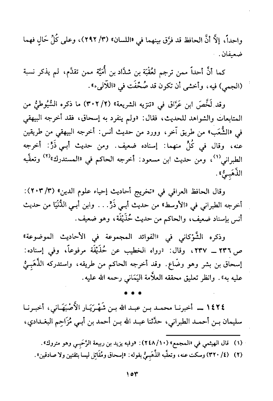 ١٤٢٤ - أخبرنا محمد بن عبد اللَّه بن شَهْرَيَار الأَصْبَهَاني، أخبرنا سليمان بن أحمد الطبراني، حدَّثنا عبد اللَّه بن أحمد بن أبي مُزَاحِم البغدادي،