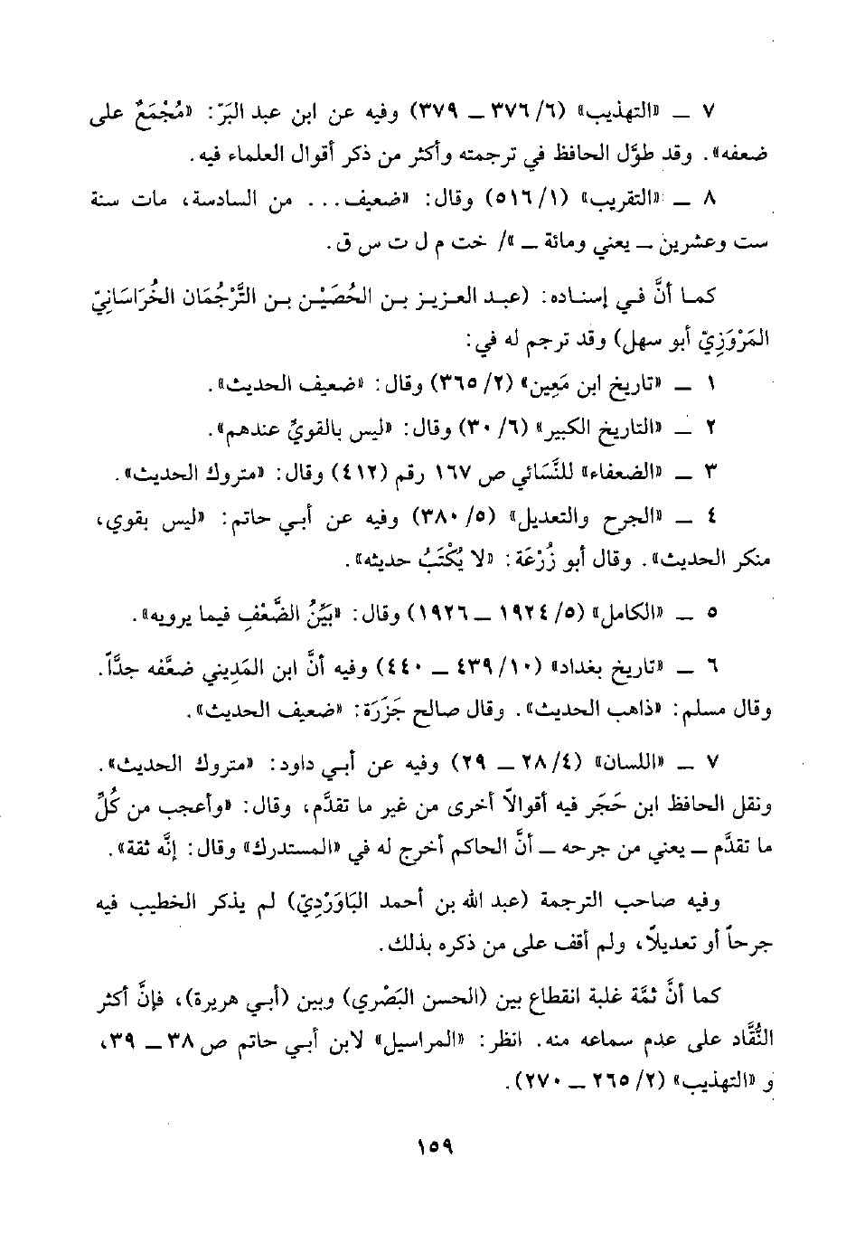 ٧ - "التهذيب" (٦/ ٣٧٦ - ٣٧٩) وفيه عن ابن عبد البَرِّ: "مُجْمَعٌ على ضعَّفه". وقد طوَّل الحافظ في ترجمته وأكثر من ذكر أقوال العلماء فيه.