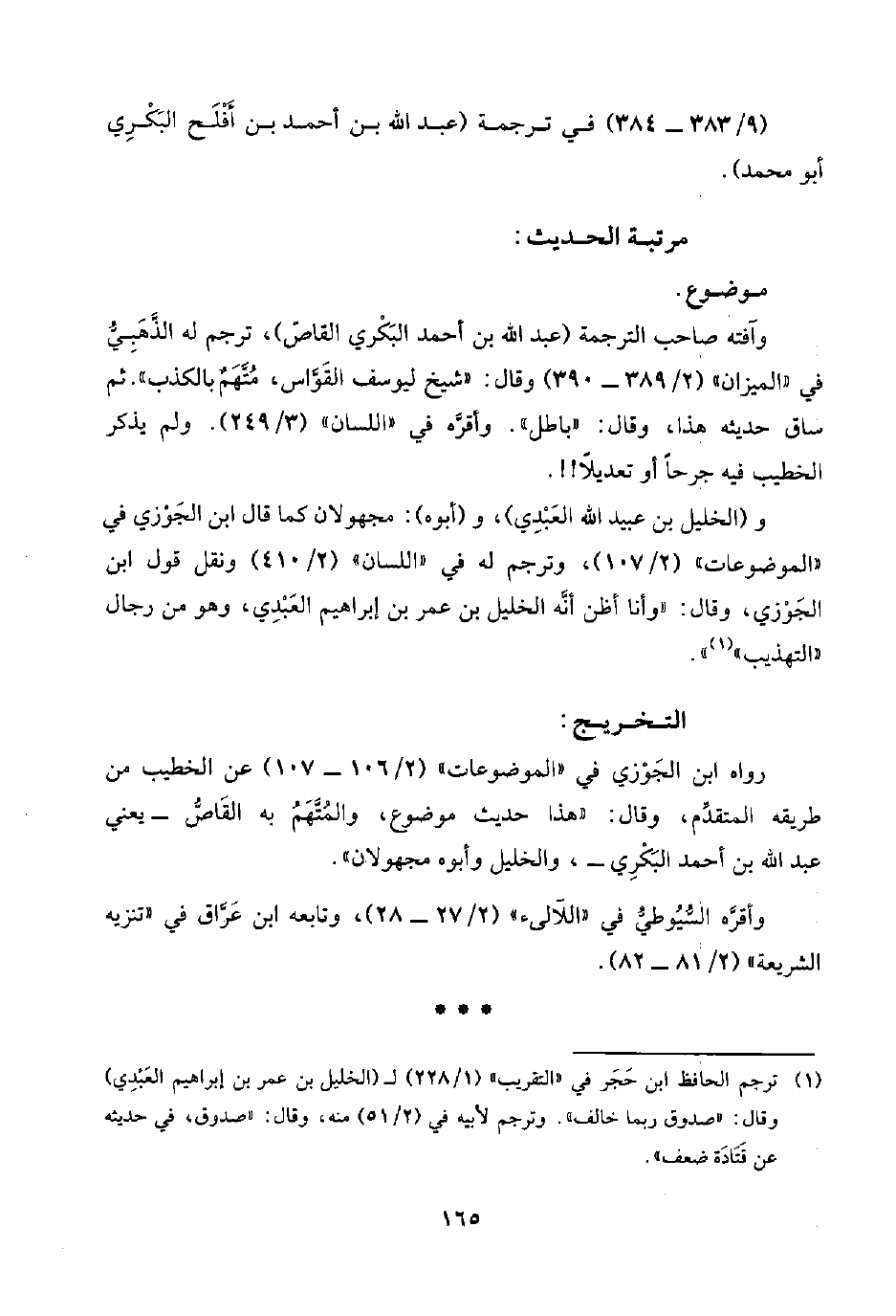 و(الخليل بن عبيد اللَّه العَبْدِي)، و (أبوه): مجهولان كما قال ابن الجَوْزي في "الموضوعات" (٢/ ١٠٧)، وترجم له في "اللسان" (٢/ ٤١٠) ونقل قول ابن الجَوْزي، وقال: "وأنا أظن أنَّه الخليل بن عمر بن إبراهيم العَبْدِي، وهو من رجال "التهذيب" (¬١) ".