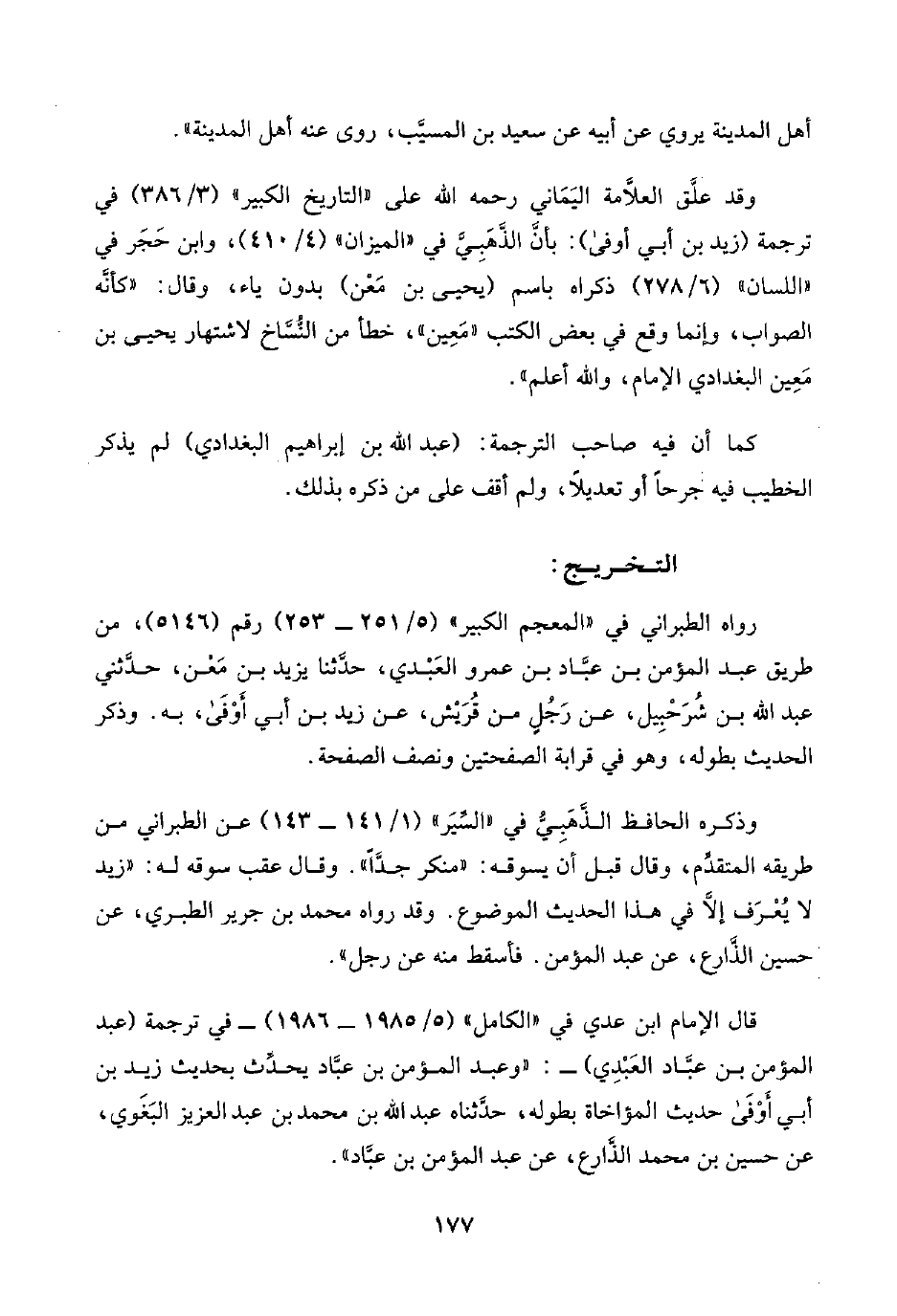 وقد علَّق العلَّامة اليَمَاني رحمه اللَّه على "التاريخ الكبير" (٣/ ٣٨٦) في ترجمة (زيد بن أبي أوفى): بأنَّ الذَّهَبِيَّ في "الميزان" (٤/ ٤١٠)، وابن حَجَر في "اللسان" (٦/ ٢٧٨) ذكراه باسم (يحيى بن مَعْن) بدون ياء، وقال: "كأنَّه الصواب، وإنما وقع في بعض الكتب "مَعِين"، خطأ من النُّسَّاخ لاشتهار يحيى بن مَعِين البغدادي الإمام، واللَّه أعلم".