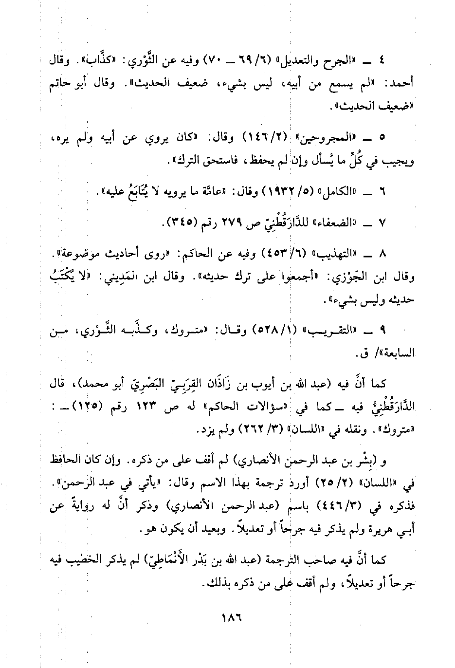 ٤ - "الجرح والتعديل" (٦/ ٦٩ - ٧٠) وفيه عن الثَّوْري: "كذَّاب". وقال أحمد: "لم يسمع من أبيه، ليس بشيء، ضعيف الحديث". وقال أبو حاتم "ضعيف الحديث".
