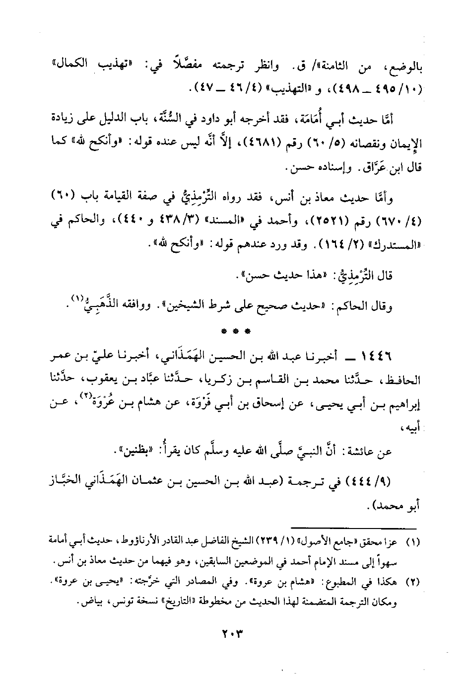 (¬٢) هكذا في المطبوع: "هشام بن عُرْوَة". وفي المصادر التي خرَّجته: "يحيى بن عُرْوَة". ومكان الترجمة المتضمنة لهذا الحديث من مخطوطة "التاريخ" نسخة تونس، بياض.