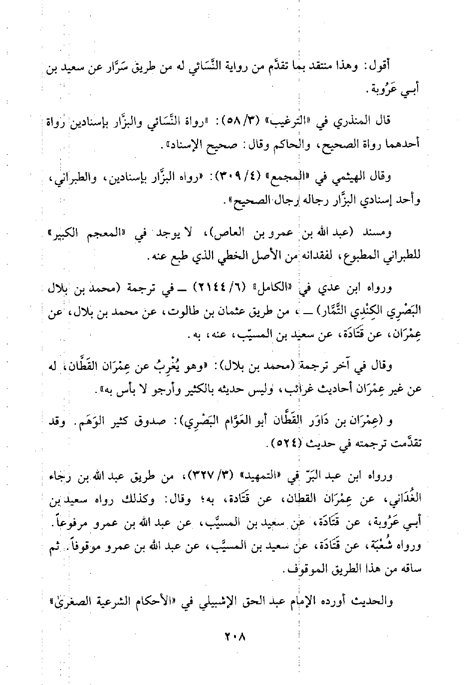 وقال في آخر ترجمة (محمد بن بلال): "وهو يُغْرِبُ عن عِمْرَان القَطَّان، له عن غير عِمْرَان أحاديث غرائب، وليس حديثه بالكثير وأرجو لا بأس به".