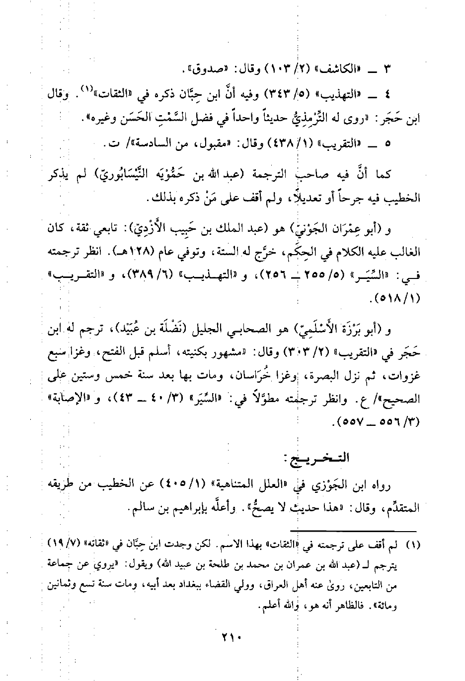 ٤ - "التهذيب" (٥/ ٣٤٣) وفيه أنَّ ابن حِبَّان ذكره في "الثقات" (¬١). وقال ابن حَجَر: "روى له التِّرْمِذِيُّ حديثًا واحدًا في فضل السَّمْتِ الحَسَن وغيره".