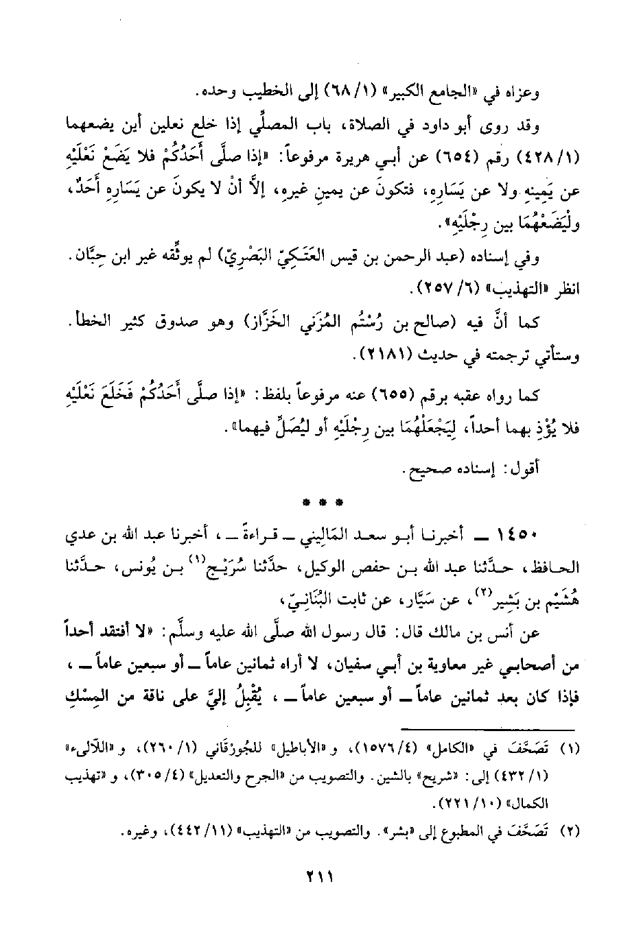 ١٤٥٠ - أخبرنا أبو سعد المَالِيني -قراءةً-، أخبرنا عبد اللَّه بن عدي الحافظ، حدَّثنا عبد اللَّه بن حفص الوكيل، حدَّثنا سُرَيْج (¬١) بن يُونس، حدَّثنا هُشَيْم بن بَشِير (¬٢)، عن سَيَّار، عن ثابت البُنَانِيّ،