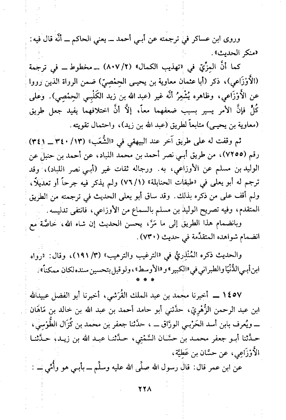 ١٤٥٧ - أخبرنا محمد بن عبد الملك القُرَشي، أخبرنا أبو الفضل عبيد اللَّه ابن عبد الرحمن الزُّهْرِيّ، حدَّثني أبو حامد أحمد بن عبد اللَّه بن خالد بن مَاهَان -ويُعرف بابن أسد الحَرْبي الورَّاق-، حدَّثنا جعفر بن محمد بن كُزَال الطُّوْسِي، حدَّثنا أبو جعفر محمد بن حسَّان السَّمْتِي، حدَّثنا عبد اللَّه بن زيد، حدَّثنا الأَوْزَاعي، عن حسَّان بن عَطِيَّة،