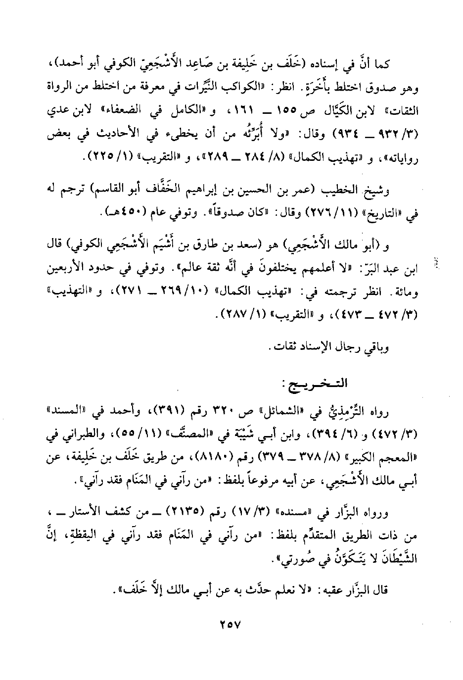 رواه التِّرْمِذِيُّ في "الشمائل" ص ٣٢٠ رقم (٣٩١)، وأحمد في "المسند" (٣/ ٤٧٢) و (٦/ ٣٩٤)، وابن أبي شَيْبَة في "المصنَّف" (١١/ ٥٥)، والطبراني في "المعجم الكبير" (٨/ ٣٧٨ - ١٧٩) رقم (٨١٨٠)، من طريق خَلَف بن خَلِيفة، عن أبي مالك الأَشْجَعِي، عن أبيه مرفوعًا بلفظ: "من رآني في المَنَام فقد رآني".