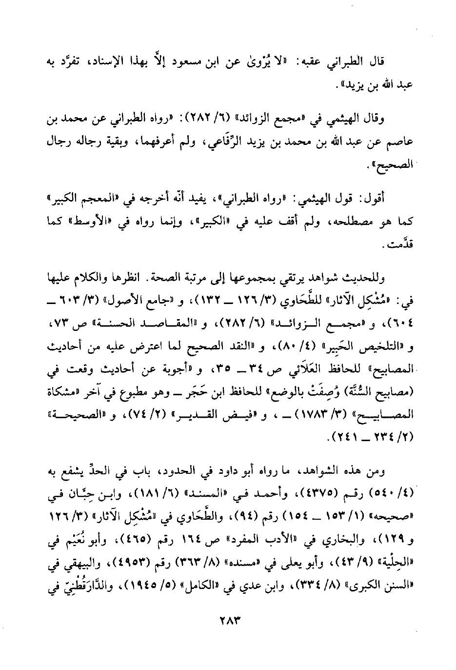 ومن هذه الشواهد، ما رواه أبو داود في الحدود، باب في الحدِّ يشفع به (٤/ ٥٤٠) رقم (٤٣٧٥)، وأحمد في "المسند" (٦/ ١٨١)، وابن حِبَّان في "صحيحه" (١/ ١٥٣ - ١٥٤) رقم (٩٤)، والطَّحَاوي في "مُشْكِل الآثار" (٣/ ١٢٦ و ١٢٩)، والبخاري في "الأدب المفرد" ص ١٦٤ رقم (٤٦٥)، وأبو نُعَيْم في "الحِلْيَة" (٩/ ٤٣)، وأبو يعلى في "مسنده" (٨/ ٣٦٣) رقم (٤٩٥٣)، والبيهقي في "السنن الكبرى" (٨/ ٣٣٤)، وابن عدي في "الكامل" (٥/ ١٩٤٥)، والدَّارَقُطْنِيّ في