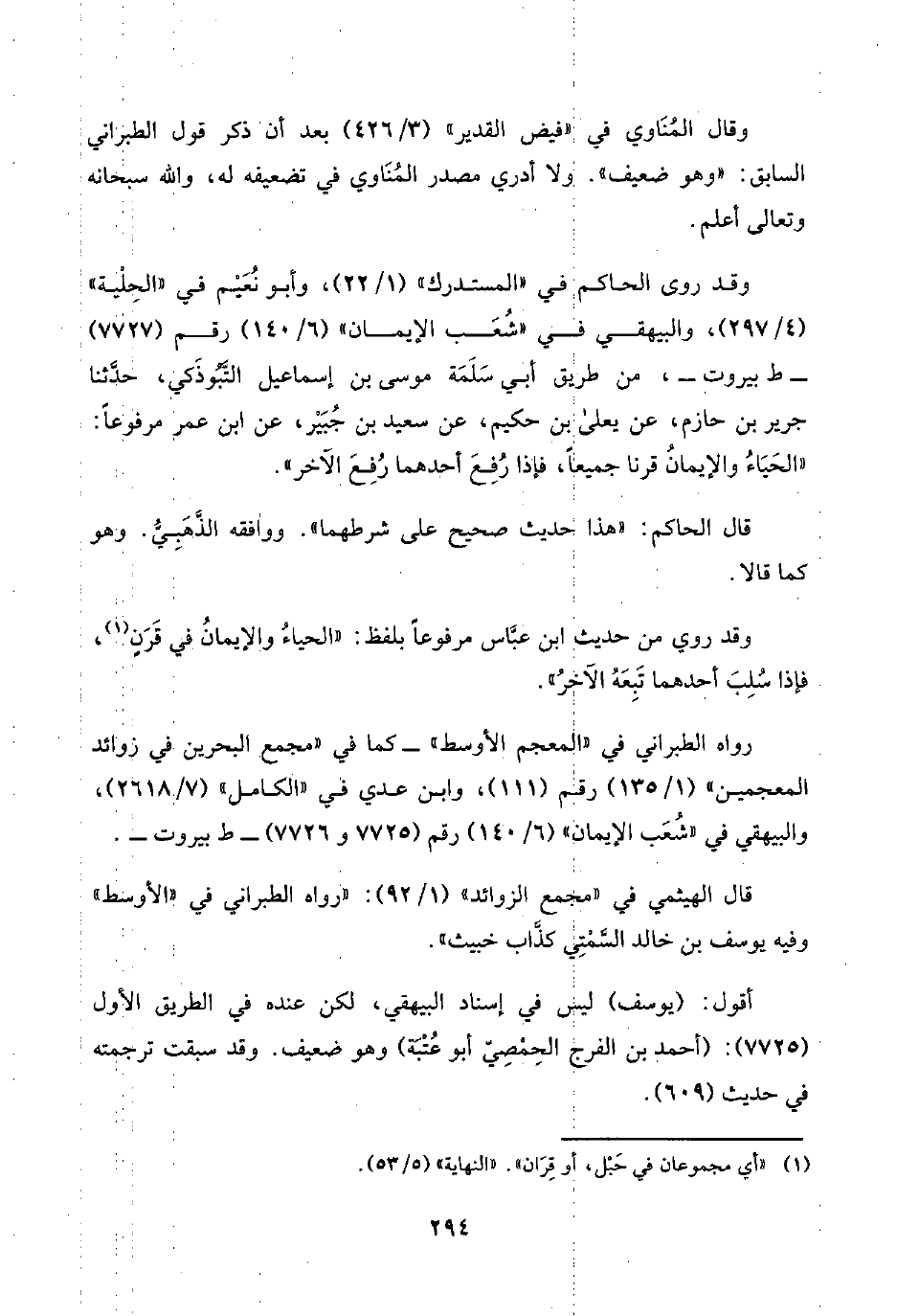 أقول: (يوسف) ليي في إسناد البيهقي، لكن عنده في الطريق الأول (٧٧٢٥): (أحمد بن الفرج الحِمْصِيّ أبو عُتْبَة) وهو ضعيف. وقد سبقت ترجمته في حديث (٦٠٩).