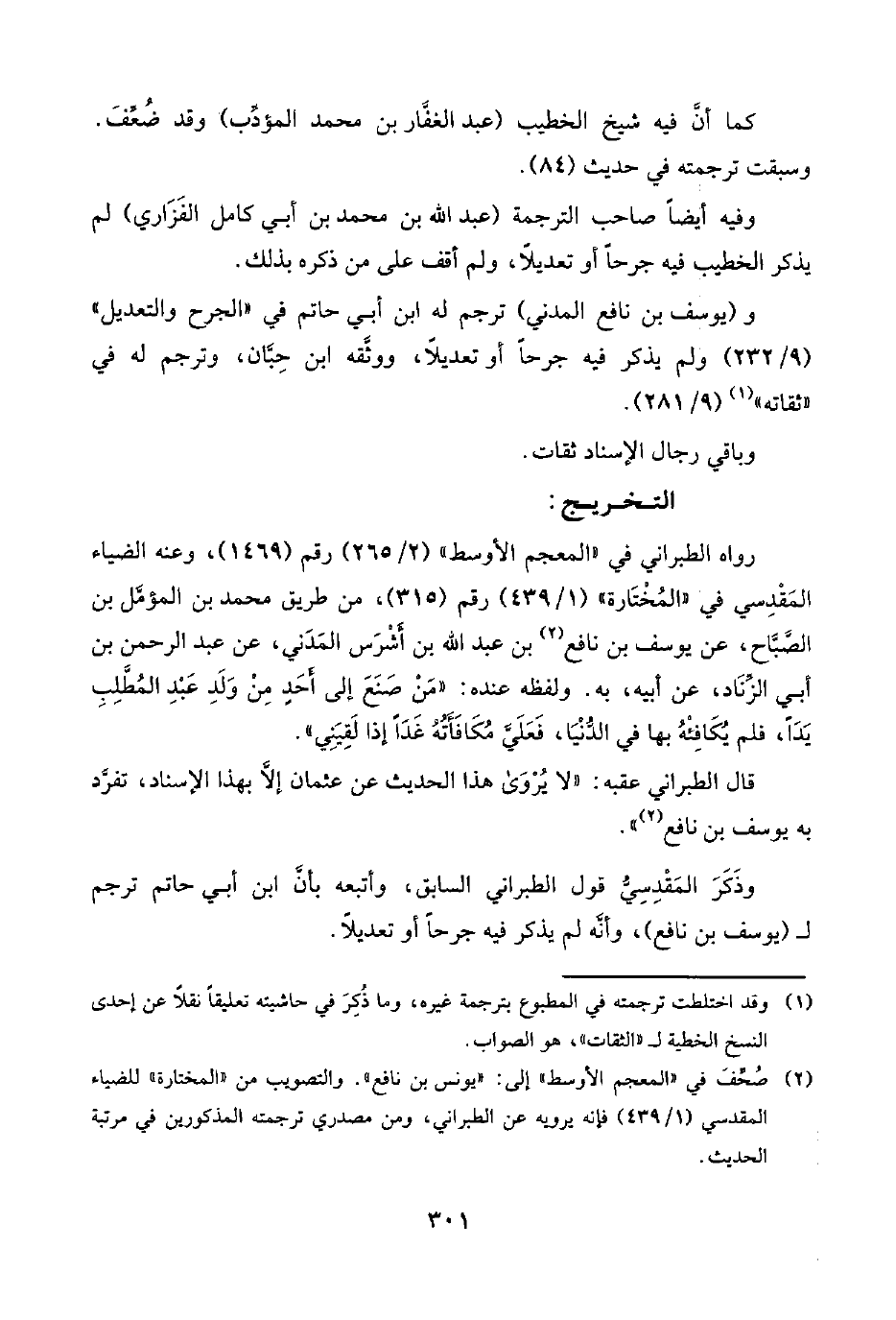 (¬٢) صُحِّفَ في "المعجم الأوسط" إلى: "يونس بن نافع"، والتصويب من "المختارة" للضياء المَقْدِسي (١/ ٤٣٩) فإنَّه يرويه عن الطبراني، ومن مصدري ترجمته المذكورين في مرتبة الحديث.