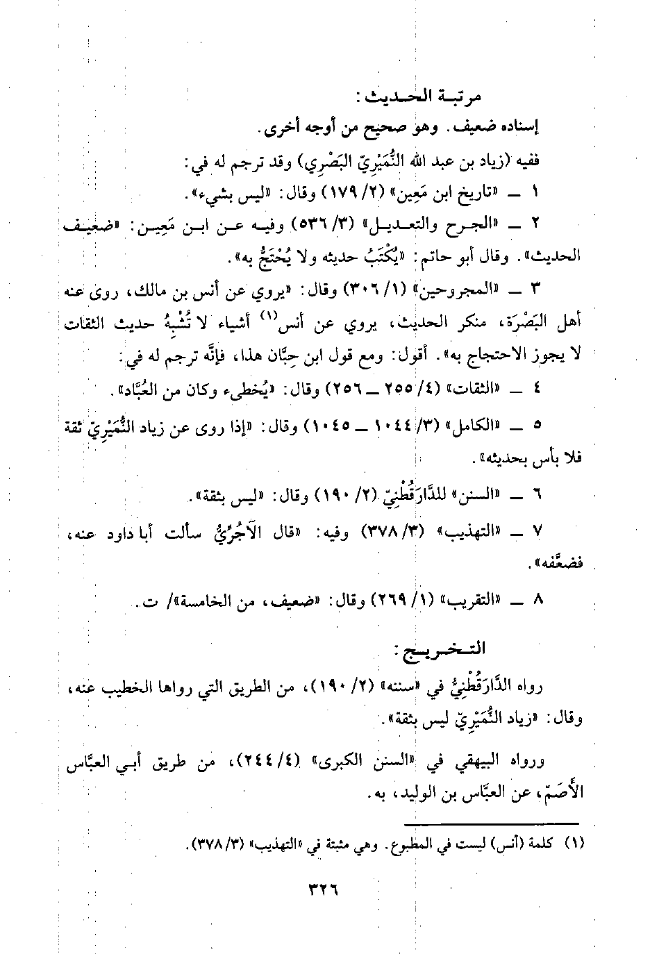 ٨ - "التقريب" (١/ ٢٦٩) وقال: ضعيف، من الخامسة"/ ت.
