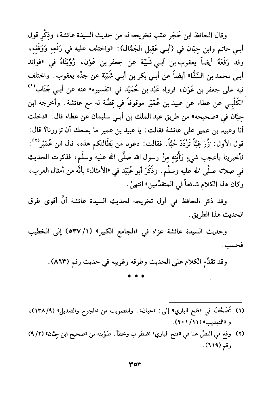 وقد ذكر الحافظ في أول تخريجه لحديث السيدة عائشة أنَّ أقوى طرق الحديث هذا الطريق.