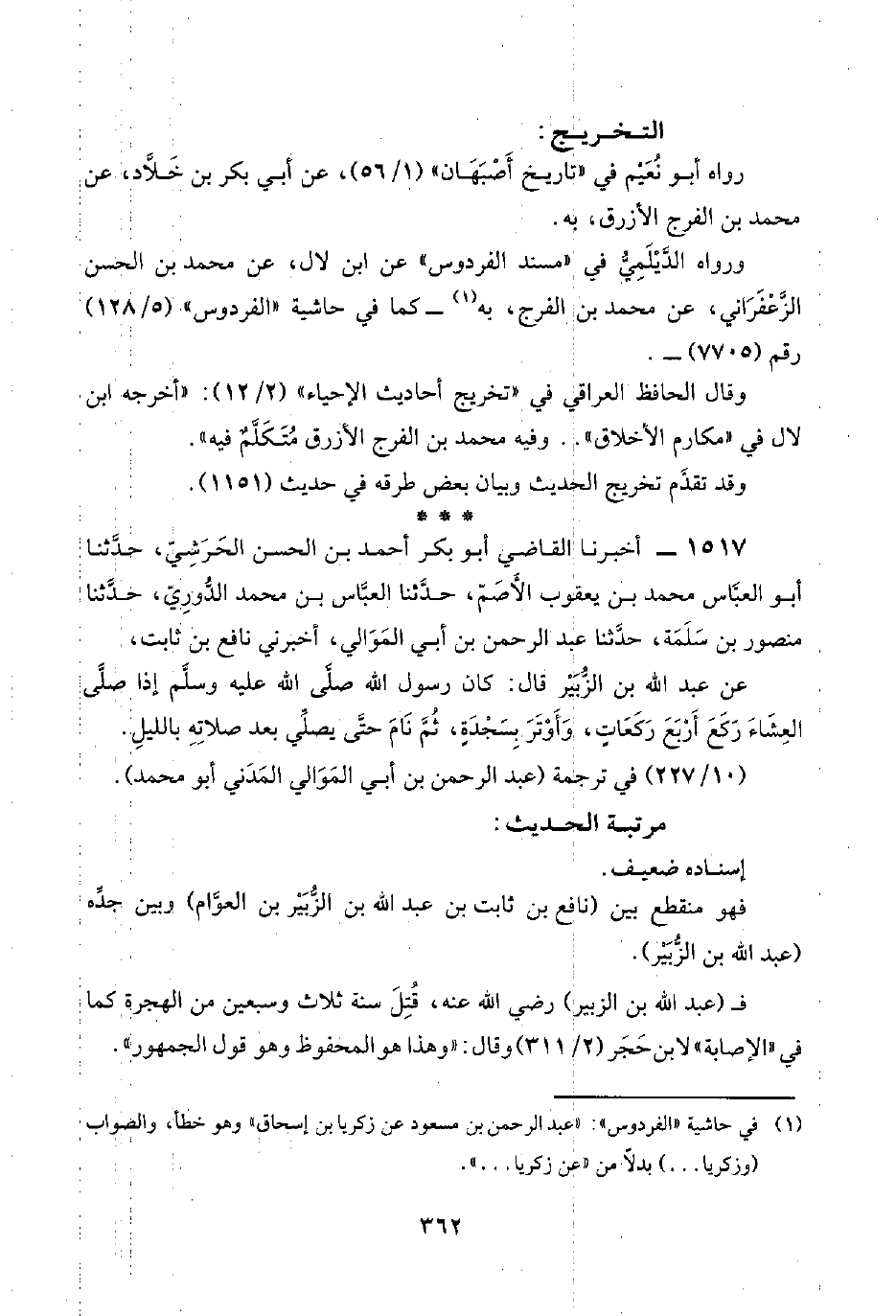(¬١) في حاشية "الفردوس": "عبد الرحمن بن مسعود عن زكريا بن إسحاق" وهو خطأ، والصواب (وزكريا. . .) بدلًا من "عن زكريا. . . ".