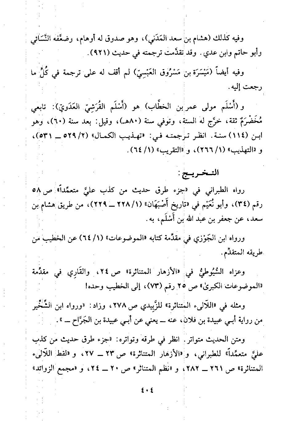 رواه الطبراني في "جزء طرق حديث من كذب عليَّ متعمِّدًا"، ص ٥٨ رقم (٣٤)، وأبو نُعَيْم في "تاريخ أَصْبَهَان" (١/ ٢٢٨ - ٢٢٩)، من طريق هشام بن سعد، عن جعفر بن عبد اللَّه بن أَسْلَم، به.